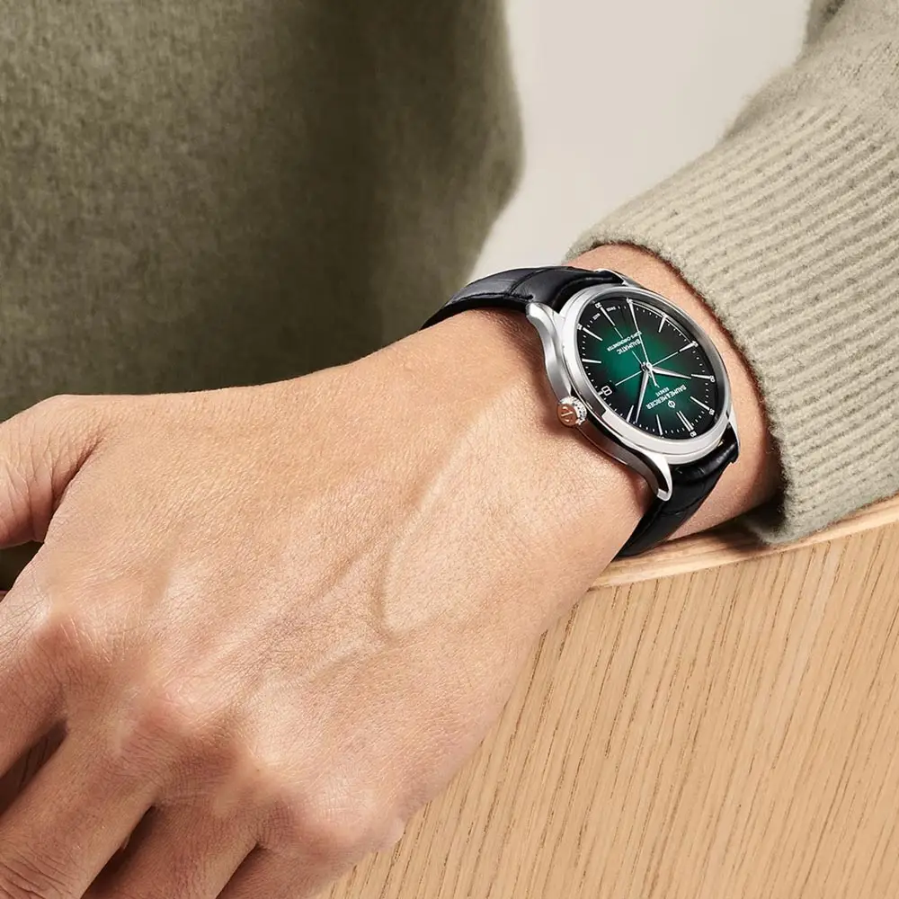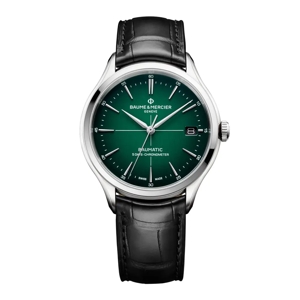 Baume & Mercier Clifton M0A10592 là sự kết hợp hoàn hảo giữa nét thanh lịch cổ điển và công nghệ chế tác đồng hồ Thụy Sĩ hiện đại. Vỏ thép không gỉ đánh bóng 40 mm bao quanh mặt số xanh lá chuyển sắc với họa tiết chữ thập cùng kim mạ rhodium, tạo nên vẻ hài hòa tinh tế. Dây da cá sấu màu đen tôn lên phong cách sang trọng và lịch lãm.