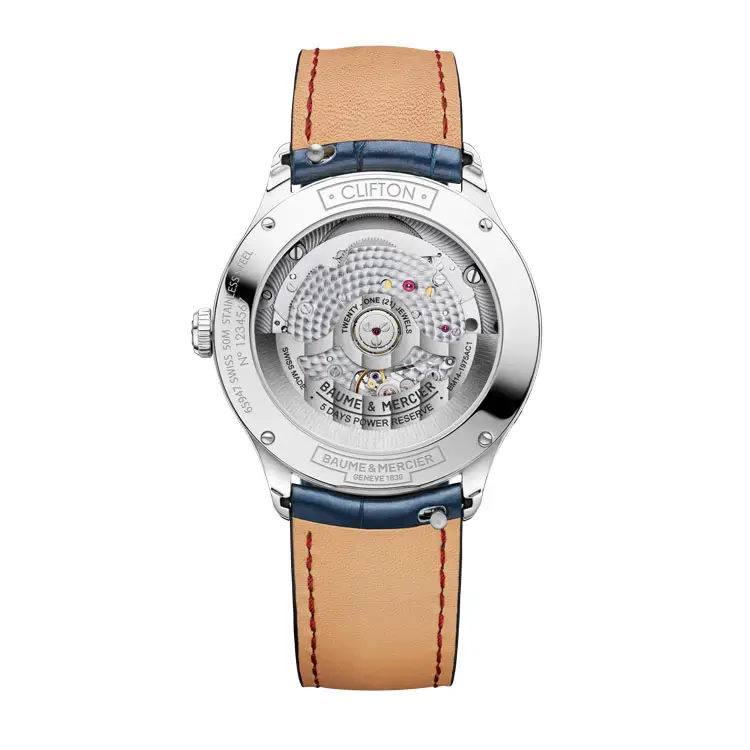 Bên trong là bộ máy cơ tự động Baumatic BM14-1975AC1 đáng tin cậy, với dự trữ năng lượng lên đến 120 giờ – hoàn hảo để đeo thoải mái mà không cần lên dây thường xuyên.