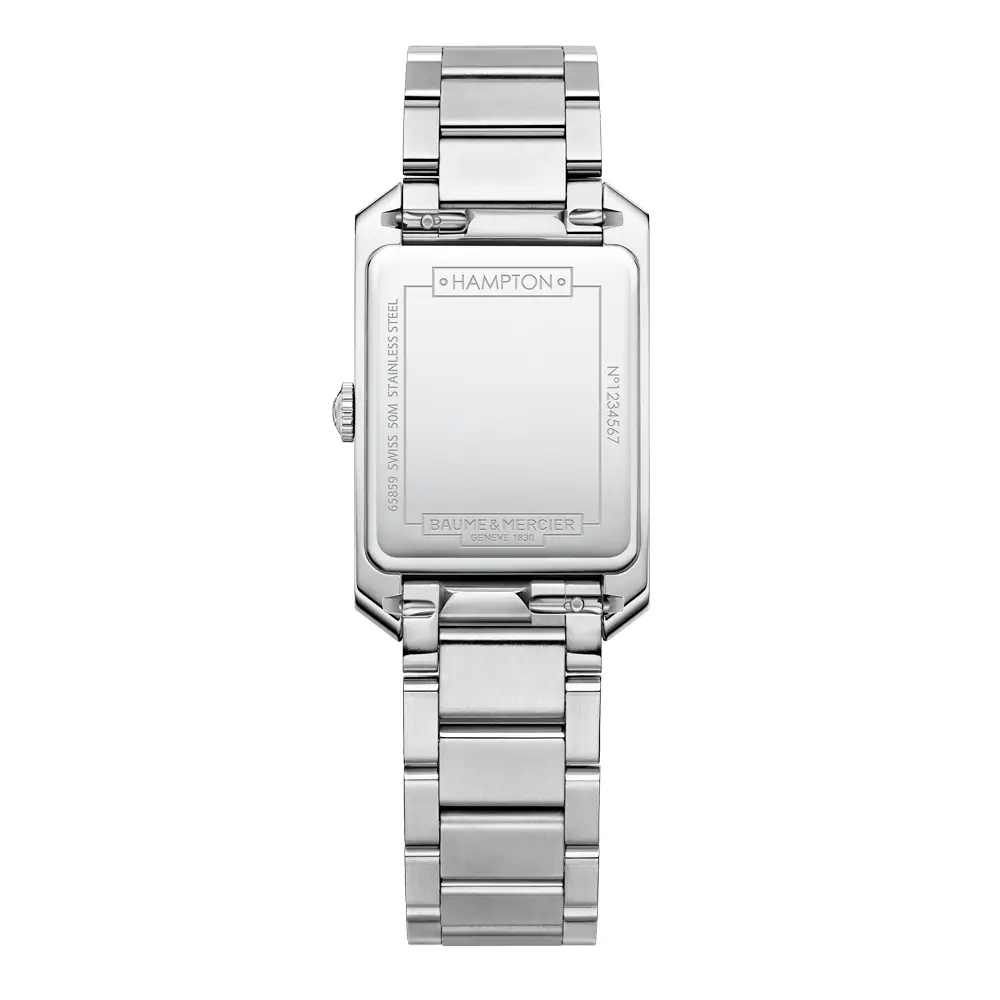 Bộ sưu tập Hampton của Baume & Mercier là lời tri ân dành cho phong cách Art Deco, kết hợp giữa sự thanh lịch hình học và sự tinh khiết kiến trúc. Điểm nhấn của bộ sưu tập là vỏ đồng hồ hình chữ nhật, gây ấn tượng với sự trường tồn và tỷ lệ tinh tế.