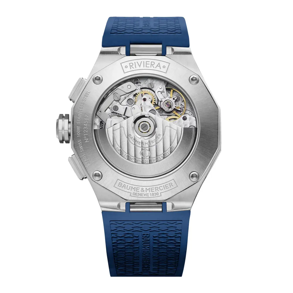 Các mẫu Riviera kết hợp vật liệu cao cấp như thép không gỉ, titan và kính sapphire với bộ máy Thụy Sĩ chính xác, bao gồm bộ máy Baumatic hiệu suất cao. Bộ sưu tập bao gồm các mẫu cổ điển ba kim, chronograph và skeleton - và hệ thống dây đeo thay nhanh giúp dễ dàng điều chỉnh đồng hồ theo phong cách cá nhân. Riviera tượng trưng cho sự sang trọng, tự do và chất lượng.