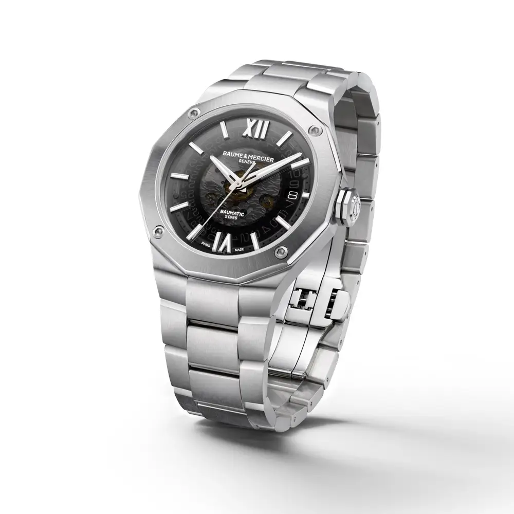 Các mẫu Riviera kết hợp vật liệu cao cấp như thép không gỉ, titan và kính sapphire với bộ máy Thụy Sĩ chính xác, bao gồm bộ máy Baumatic hiệu suất cao. Bộ sưu tập bao gồm các mẫu cổ điển ba kim, chronograph và skeleton - và hệ thống dây đeo thay nhanh giúp dễ dàng điều chỉnh đồng hồ theo phong cách cá nhân. Riviera tượng trưng cho sự sang trọng, tự do và chất lượng.
