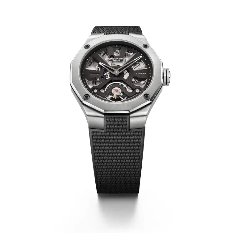 Các mẫu Riviera kết hợp vật liệu cao cấp như thép không gỉ, titan và kính sapphire với bộ máy Thụy Sĩ chính xác, bao gồm bộ máy Baumatic hiệu suất cao. Bộ sưu tập bao gồm các mẫu cổ điển ba kim, chronograph và skeleton - và hệ thống dây đeo thay nhanh giúp dễ dàng điều chỉnh đồng hồ theo phong cách cá nhân. Riviera tượng trưng cho sự sang trọng, tự do và chất lượng.