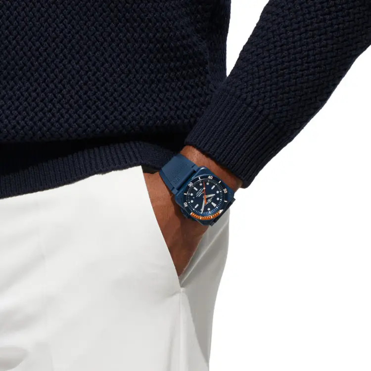 Bên trong là bộ máy cơ tự động, đảm bảo độ chính xác và bền bỉ. Dây cao su xanh chống nước biển hoàn hảo, kết hợp với khả năng chống nước 300 m (30 ATM). BR 03-92 Diver Tara là biểu tượng của đại dương và tinh thần phiêu lưu.