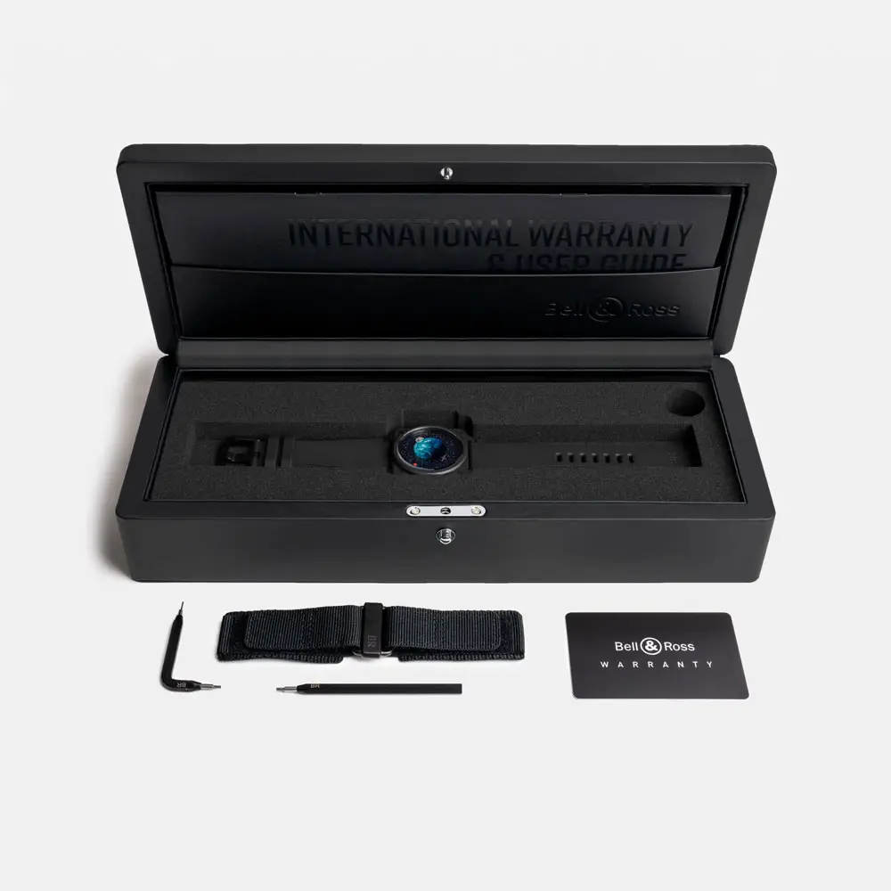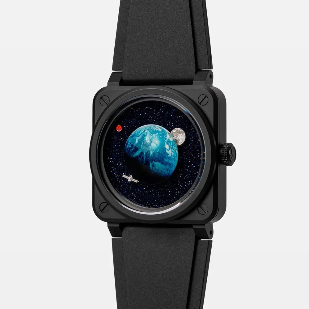 Bell & Ross BR-03 Astro BR03A-EMM-CE/SRB là phiên bản giới hạn chỉ 999 chiếc, mang đến nguồn cảm hứng từ vũ trụ kết hợp cùng kỹ nghệ đồng hồ Thụy Sĩ. Thuộc bộ sưu tập BR-03 biểu tượng, đồng hồ giữ nguyên thiết kế mặt vuông lấy cảm hứng từ bảng điều khiển máy bay. Vỏ gốm đen mờ 41 mm có khả năng chống nước 100 m, đi kèm dây cao su đen và khóa gập phủ PVD.
