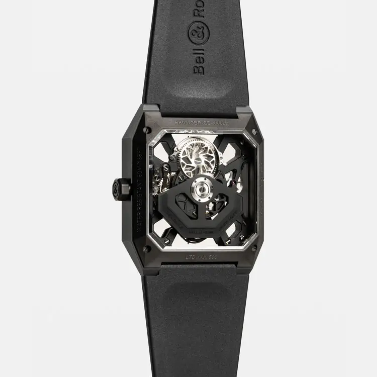 Bên trong là bộ máy cơ tự động BR-CAL.383 với dự trữ năng lượng 48 giờ, được chế tác hoàn hảo và hòa hợp với cấu trúc vỏ. Dây cao su đen với khóa gài mang lại sự thoải mái và hiện đại. Với khả năng chống nước 50m (5 bar), Bell & Ross BR 03 Cyber Ceramic không chỉ là một chiếc đồng hồ – mà là tuyên ngôn của sự sáng tạo và phong cách táo bạo.