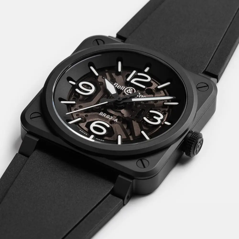Bell & Ross BR 03 Skeleton Black Ceramic (Mã BR03A-BL-SKCE/SRB) là biểu tượng của sự kết hợp giữa kỹ thuật hiện đại và thiết kế kiến trúc tinh tế, phô bày vẻ đẹp cơ học bên trong nghệ thuật chế tác đồng hồ cao cấp. Mẫu đồng hồ này hòa quyện giữa phong cách công nghiệp đặc trưng của Bell & Ross và nét thanh thoát của cấu trúc skeleton.