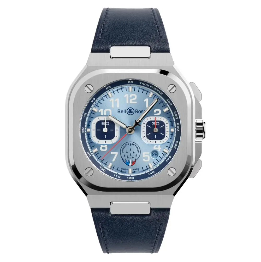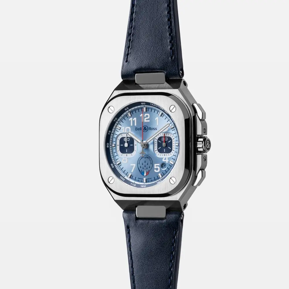 Bell & Ross BR 05 Chrono Patrouille de France (Mã BR05C-PAF-ST/SCA) là phiên bản giới hạn tôn vinh mối quan hệ hợp tác giữa Bell & Ross và đội bay nhào lộn ưu tú Patrouille de France. Mẫu đồng hồ kết hợp sự thanh lịch thể thao với tinh thần hàng không, thể hiện độ chính xác kỹ thuật và phong cách đậm chất phi công.