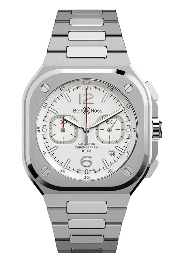 Bell & Ross BR 05 Chrono White Hawk là sự kết hợp hoàn hảo giữa thiết kế mạnh mẽ, tính năng hữu dụng và độ chính xác của đồng hồ Thụy Sĩ. Mẫu đồng hồ này có vỏ vuông bằng thép không gỉ, kích thước 42 mm, mang phong cách hiện đại và sang trọng.