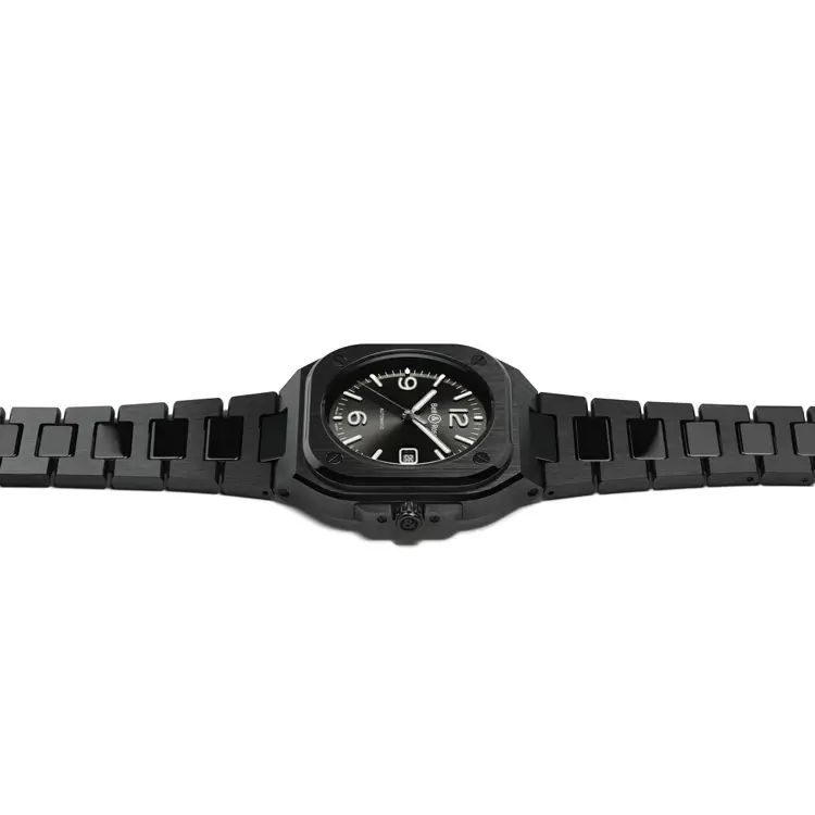 Bên trong là bộ máy cơ tự động BR-CAL.321-1 với dự trữ năng lượng 54 giờ, đảm bảo độ chính xác cao. Dây gốm đen tích hợp với khóa gập mang lại sự thoải mái và phong cách. Với khả năng chống nước 100m (10 bar), Bell & Ross BR 05 Black Ceramic là biểu tượng của sự hiện đại, mạnh mẽ và đẳng cấp tinh tế.