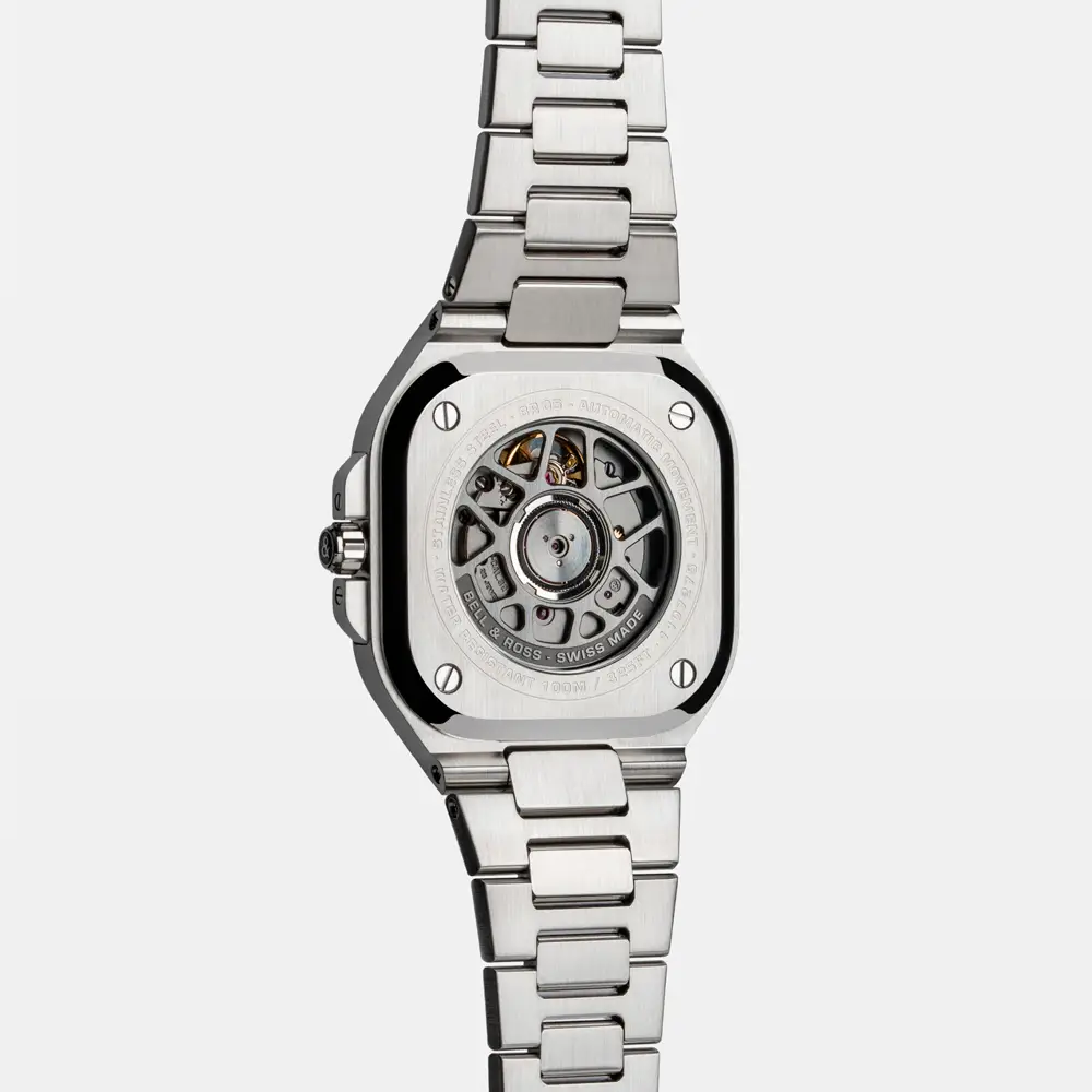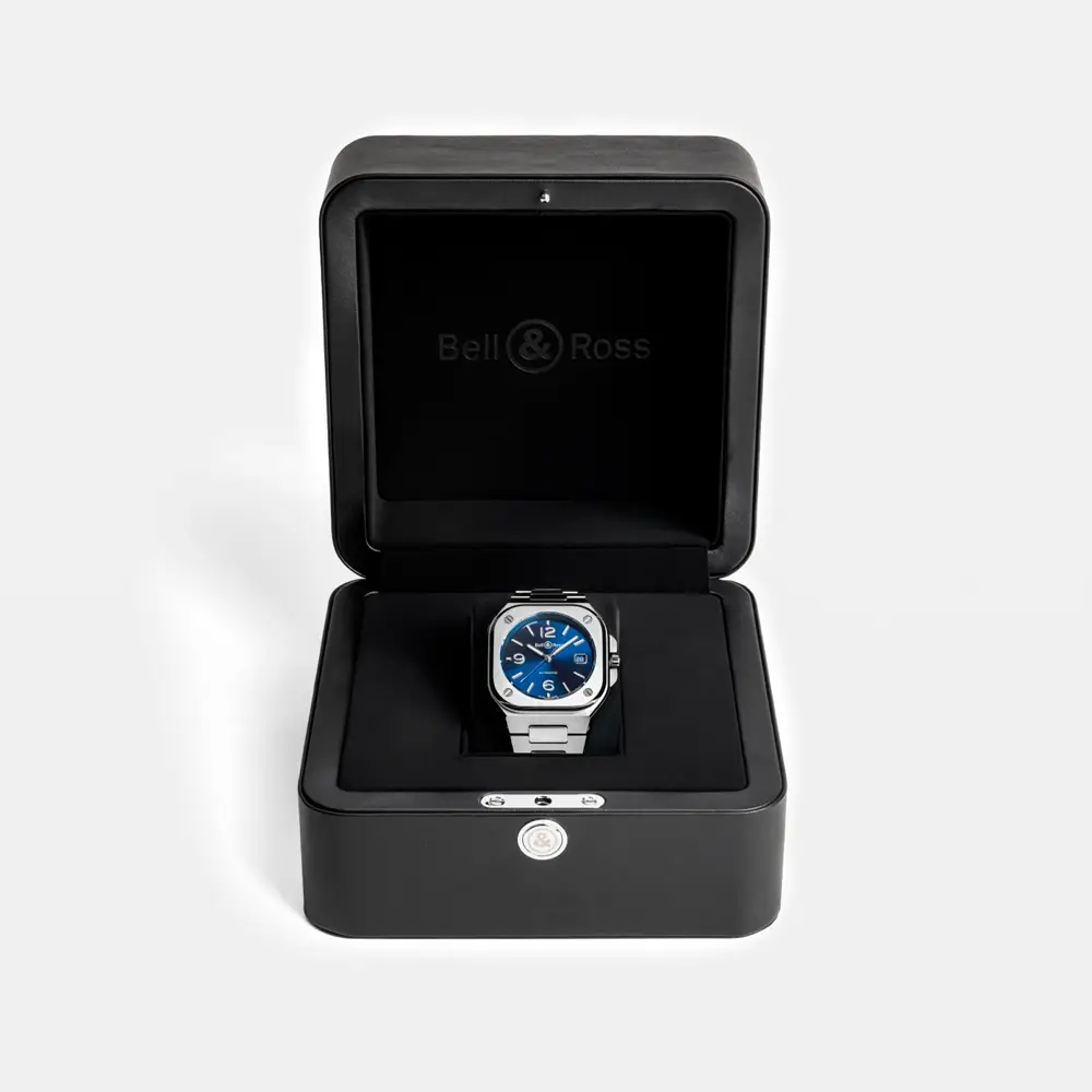 Bên trong là bộ máy cơ tự động BR-CAL.321 với dự trữ năng lượng khoảng 42 giờ, mang lại hiệu suất ổn định và chính xác. Với khả năng chống nước 100 m (10 ATM) cùng độ hoàn thiện tinh xảo, BR 05 Blue Steel là sự hòa quyện tuyệt vời giữa chức năng thể thao, phong cách hiện đại và nét thanh lịch kiểu Pháp.