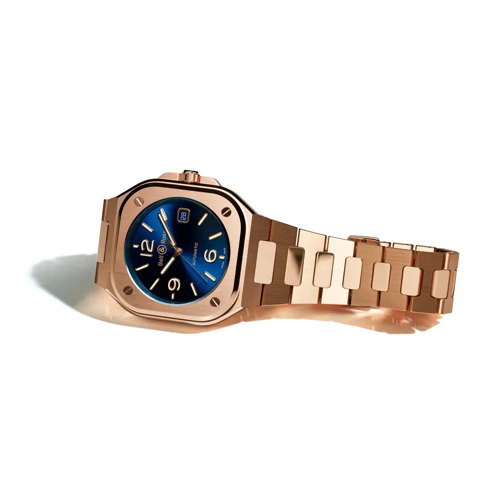 Bell & Ross BR 05 Blue Gold (Mã BR05A-BLU-PG/SRB) là sự kết hợp hoàn hảo giữa sự sang trọng tinh tế và độ chính xác kỹ thuật, đặc trưng của bộ sưu tập BR 05. Mẫu đồng hồ này kết hợp ánh vàng hồng 18 K ấm áp với mặt số xanh hiệu ứng tia sáng, tạo nên sự cân bằng giữa phong cách thể thao và nét thanh lịch vượt thời gian.