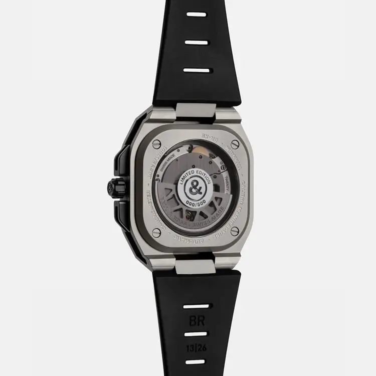 Bộ sưu tập BR-X5 của Bell & Ross đánh dấu một chương mới trong sự phát triển của thiết kế vuông biểu tượng của thương hiệu. Dòng sản phẩm này vượt qua giới hạn của kỹ thuật cấu trúc và thiết kế đồng hồ nhờ vào cấu trúc nhiều lớp của vỏ, được làm từ các vật liệu khác nhau - chủ yếu là titan và thép - mang lại độ bền tối ưu và hiệu ứng thị giác ấn tượng. Mỗi chiếc đồng hồ trong bộ sưu tập này được trang bị bộ máy chronometer mạnh mẽ với bộ máy tự động BR-CAL.323, được chứng nhận bởi COSC, đảm bảo độ chính xác vượt trội.