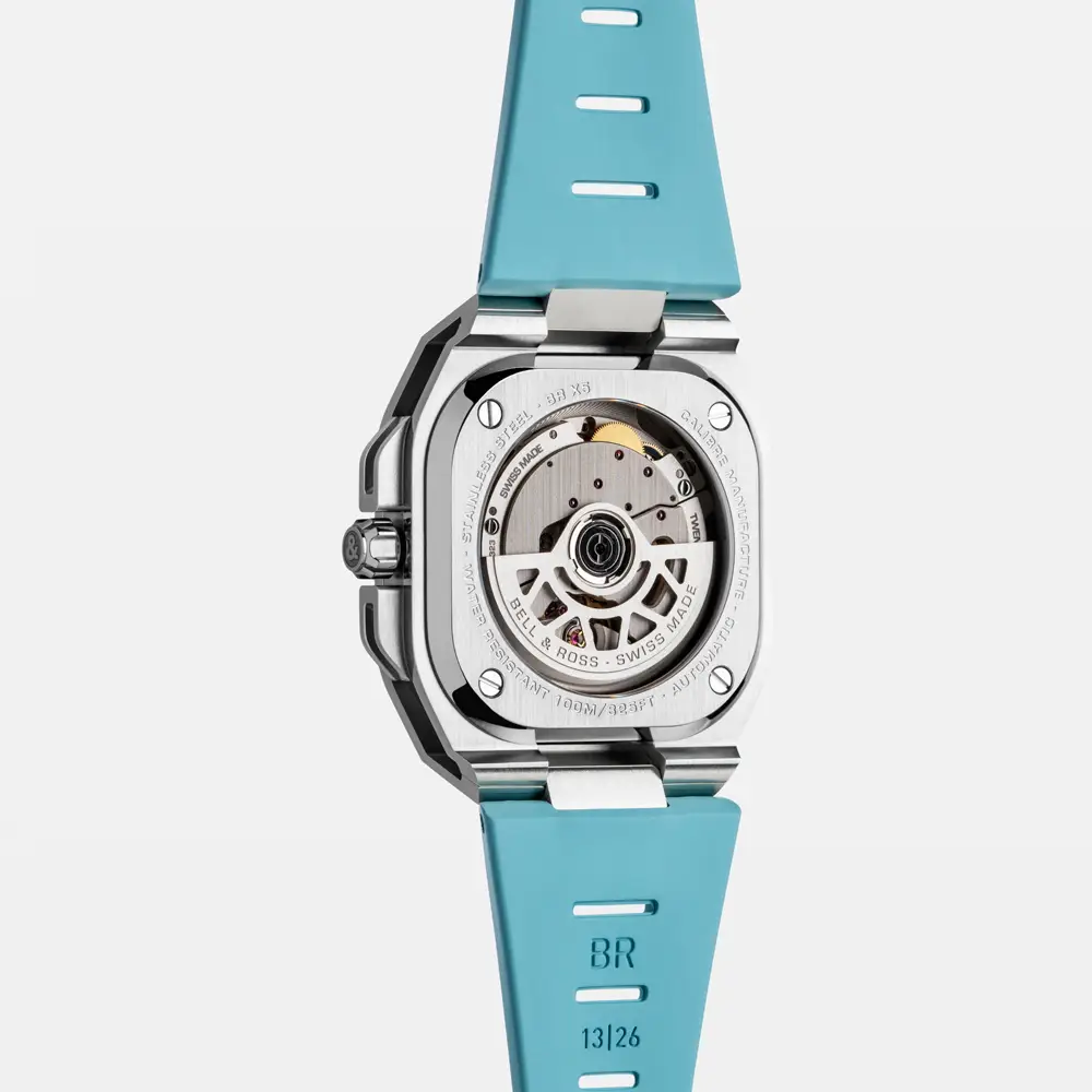 Đồng hồ sử dụng bộ máy BR-CAL.323 hợp tác phát triển với Kenissi, có dự trữ 70 giờ. Dây thép khóa gập mang lại sự thoải mái và sang trọng, trong khi chống nước 100 m (10 bar) bảo đảm độ bền. BR-X5 Ice Blue Steel là biểu tượng của phong cách hiện đại và độ chính xác Thụy Sĩ.