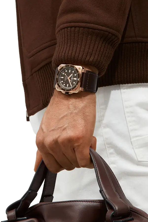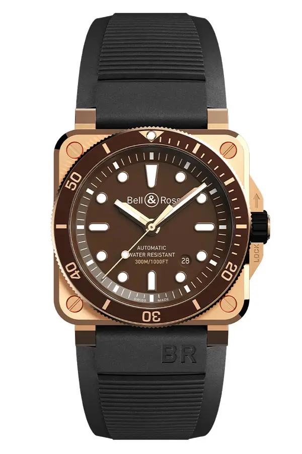 Đồng hồ thể thao cao cấp cho nam Bell & Ross tự hào đại diện cho truyền thống chế tác đồng hồ Thụy Sĩ. Sản phẩm kết hợp thiết kế hiện đại, tinh tế và chức năng hoàn hảo. Về ngoại hình và thiết kế, đây là mẫu đồng hồ vuông với cơ chế thoát cót, vỏ bằng đồng thau, khả năng chống nước 30ATM/300 mét. Đồng hồ trang bị kính sapphire, viền ceramic, hiển thị ngày và dây da nâu, có thể điều chỉnh độ dài miễn phí tại cửa hàng trang sức của chúng tôi nếu cần. Bell & Ross Instruments BR03-92 Diver được trang bị mặt số analog sạch sẽ, sang trọng và bộ máy cơ tự động Calibre BR-CAL.302. Thiết kế và tính năng của nó sẽ làm bạn hài lòng trong mọi hoàn cảnh. Tuy nhiên, bạn cũng có thể tin tưởng vào chúng trong điều kiện khắc nghiệt. Đồng hồ được sản xuất với số lượng giới hạn 999 chiếc, kết hợp với chất lượng gia công tinh xảo và thiết kế độc đáo, khiến chúng trở thành một món đồ sưu tập có giá trị.