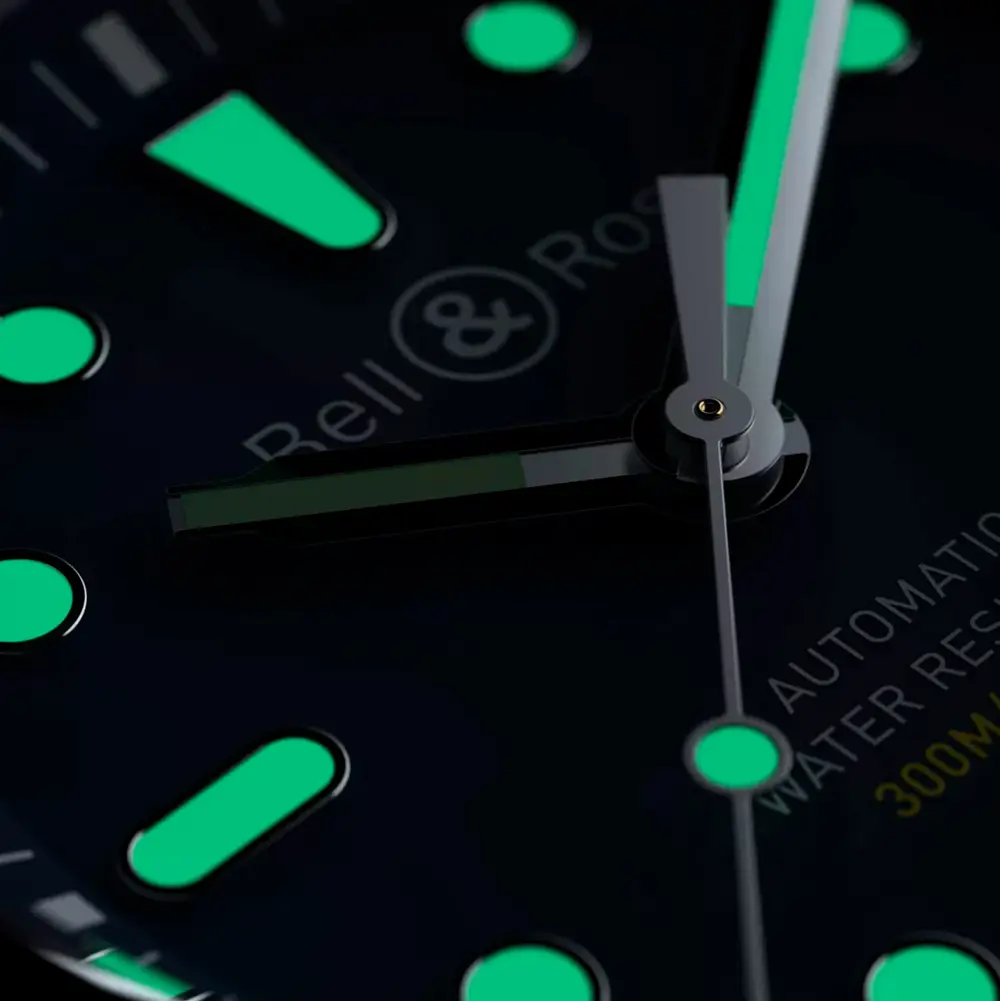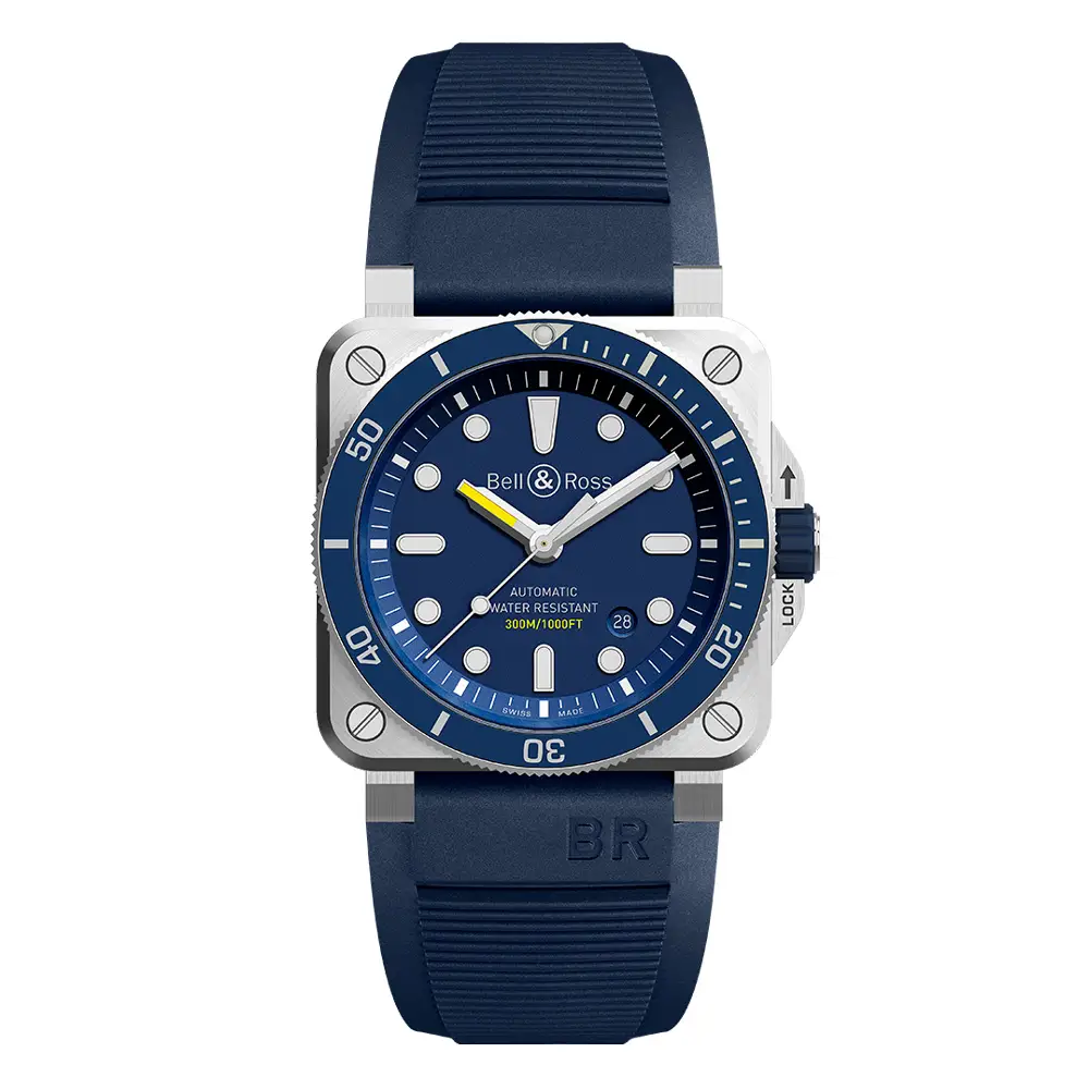 Bên trong là bộ máy cơ tự động BR-CAL.302 với chức năng giờ, phút, giây và lịch ngày (giữa vị trí 4 và 5 giờ). Với khả năng chống nước 300 m (30 ATM) cùng dây cao su màu xanh bền bỉ và thoải mái, BR 03-92 Diver Blue là biểu tượng của sức mạnh, sự thanh lịch và độ tin cậy — hoàn hảo cho cả cuộc sống trên bờ lẫn dưới biển.