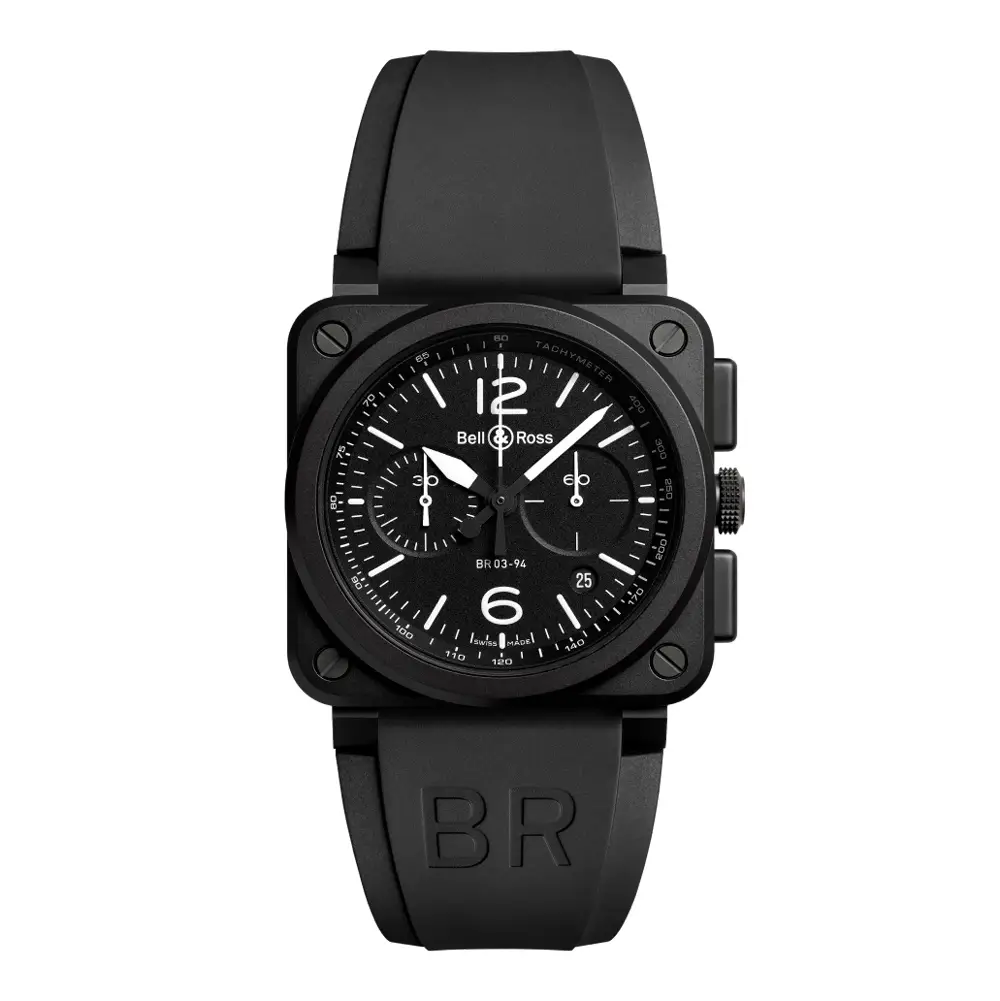 Bên trong là bộ máy cơ tự động BR-CAL.301 với chức năng chronograph và lịch ngày giữa vị trí 4 và 5 giờ, dự trữ năng lượng khoảng 42 giờ. Với khả năng chống nước 100 m (10 ATM) và dây cao su đen, BR 03-94 Black Matte là biểu tượng của sức mạnh, độ chính xác và hiệu suất chuyên nghiệp.