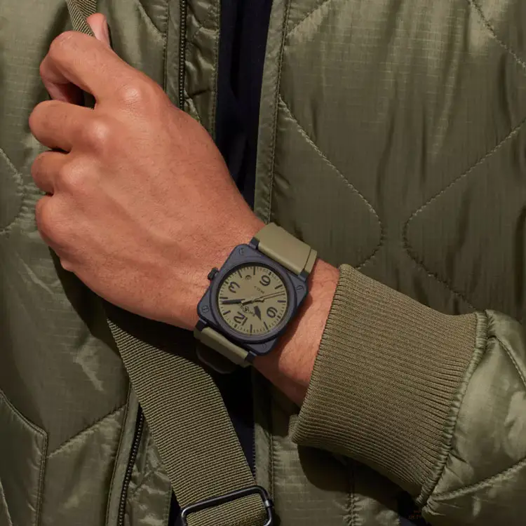 Bell & Ross BR 03 Military Ceramic kết hợp phong cách quân đội, độ chính xác kỹ thuật và độ bền vượt trội. Được chế tác theo tiêu chuẩn quân sự, chiếc đồng hồ này phù hợp với môi trường khắc nghiệt cũng như sử dụng hàng ngày – lựa chọn lý tưởng cho những ai yêu thích phong cách chiến thuật.