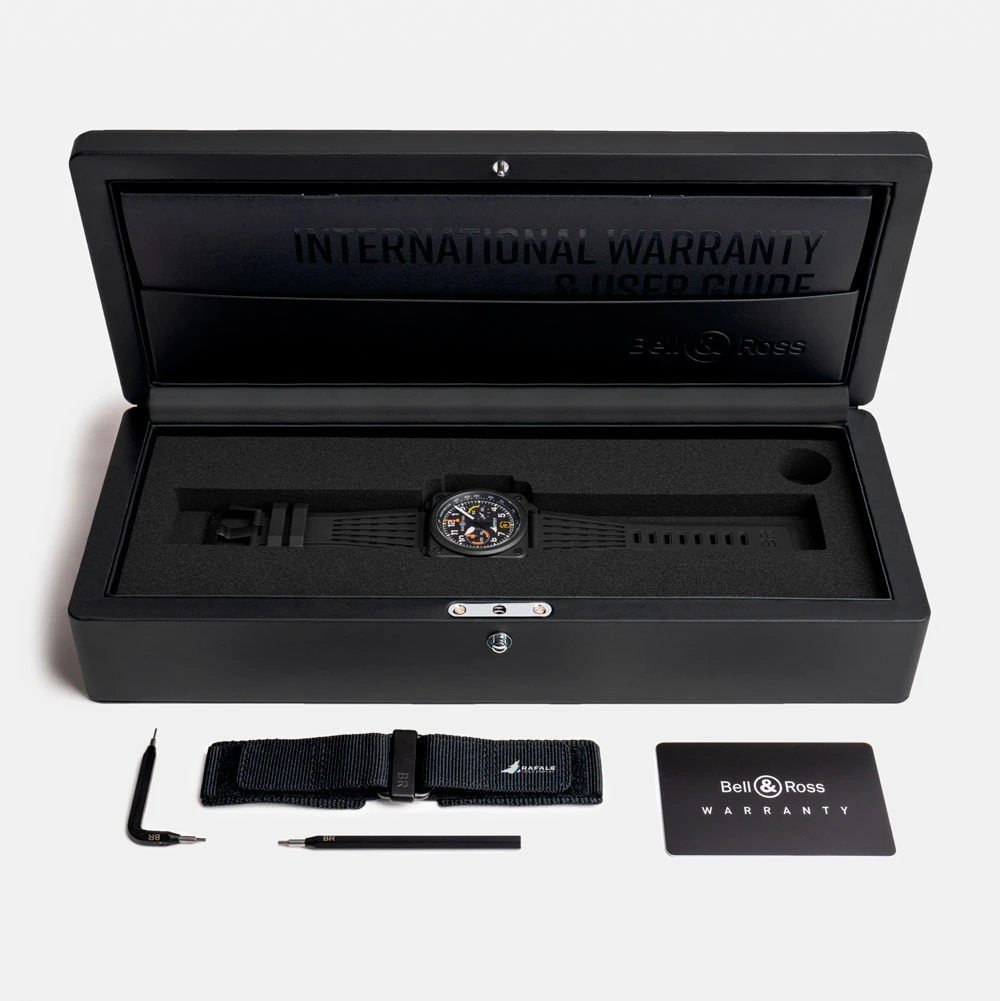 Khả năng chống nước 100 mét, đi kèm dây cao su chắc chắn, bổ sung thêm dây vải mang logo Rafale Solo Display. BR-03 Chrono Rafale Solo Display kết hợp tinh thần hàng không, tính độc quyền của phiên bản giới hạn và sự chính xác của chế tác Thụy Sĩ – lựa chọn hoàn hảo cho nhà sưu tầm và người yêu hàng không.