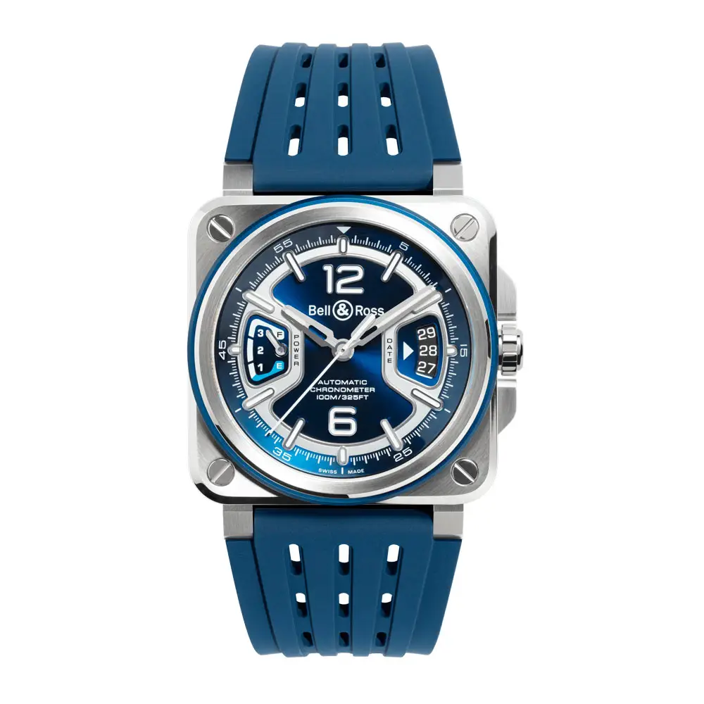 Khả năng chống nước 100 mét, đi kèm dây cao su đục lỗ mang lại sự thoải mái và hiện đại. Bell & Ross BR-X3 Blue Steel là lựa chọn hoàn hảo cho những ai tìm kiếm sự kết hợp giữa thể thao sang trọng, độ chính xác kỹ thuật và phong cách mạnh mẽ.