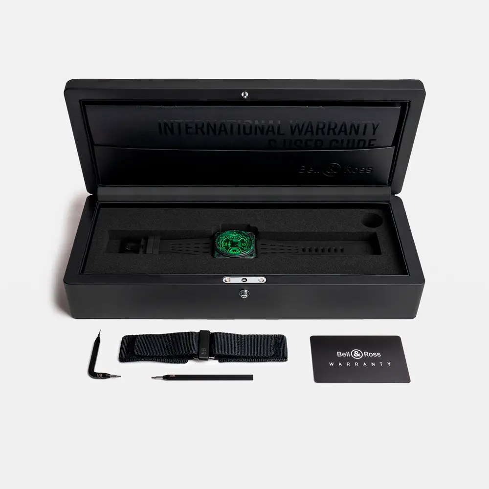 Đồng hồ Bell & Ross BR-X3 Night Vision (ref. BRX3R-GN-CA/SRB) là phiên bản tương lai của phong cách hàng không biểu tượng Bell & Ross, dành cho những người yêu công nghệ hiện đại và chế tác đồng hồ cao cấp. Phiên bản giới hạn chỉ 250 chiếc này gây ấn tượng mạnh với thiết kế táo bạo, kết hợp vật liệu tiên tiến và tay nghề Thụy Sĩ tinh xảo.