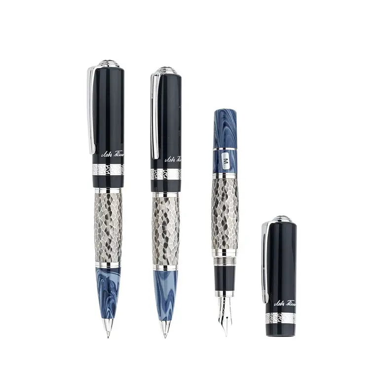 Chế tác từ nhựa quý hiếm, thân bút mạ bạc, kẹp bút mạ bạch kim, và nắp nhựa cao cấp mang đến vẻ đẹp tinh tế, bền bỉ theo thời gian. Ngòi vàng 18kt thủ công (cỡ M) cho cảm giác viết mượt mà và chính xác.