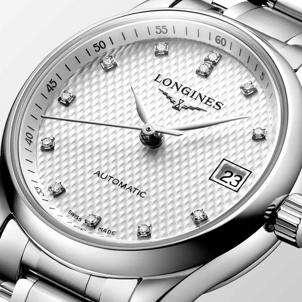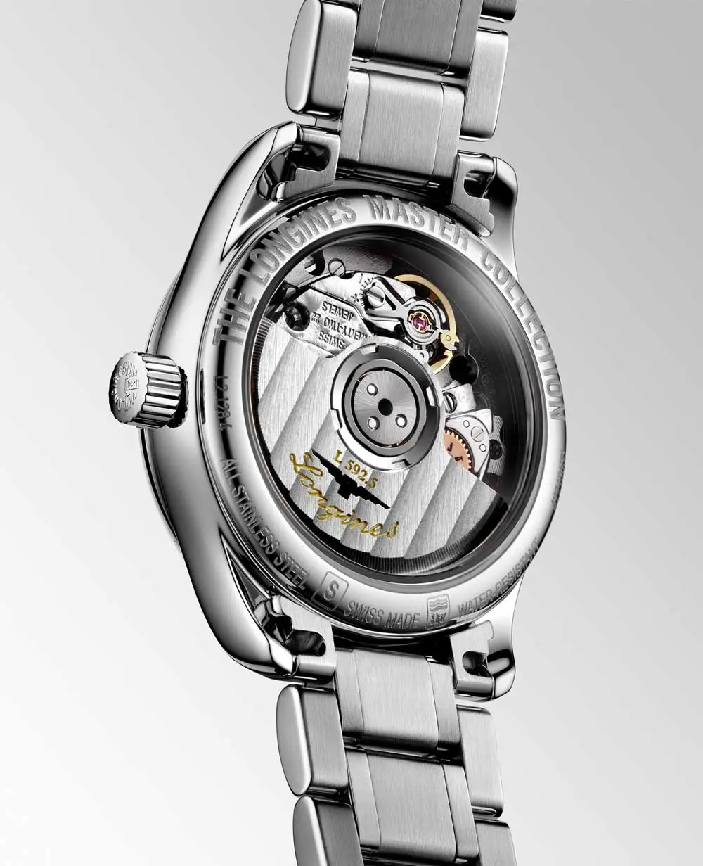 Bên trong là bộ máy automatic L592 với mức trữ cót 45 giờ, đảm bảo độ chính xác và độ tin cậy. Khả năng chống nước 30 m (3 ATM) cùng dây thép với khóa gập ba lớp an toàn hoàn thiện vẻ xa hoa của dòng nữ Longines Master Collection.