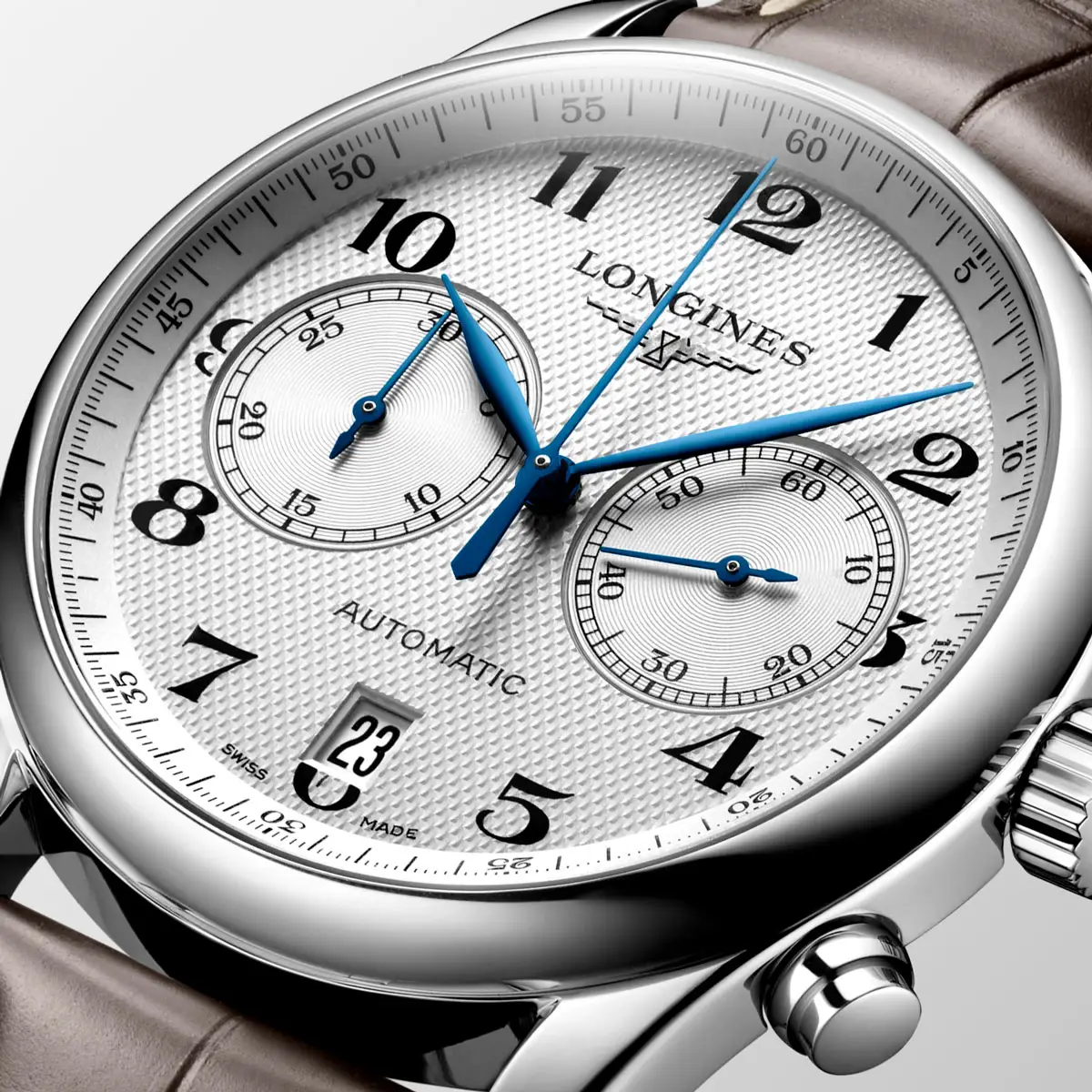 Longines Master Collection L2.629.4.78.3 là mẫu đồng hồ nam automatic chronograph, kết hợp truyền thống chế tác Thụy Sĩ với phong cách hiện đại. Vỏ thép không gỉ 40 mm đi kèm kính sapphire chống trầy và mặt sau lộ cơ.