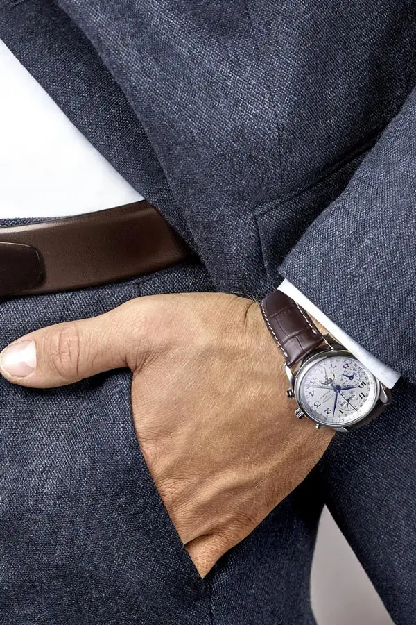 Dây đeo da cá sấu màu nâu với khóa gập mang lại cảm giác thoải mái và chắc chắn. Khả năng chống nước 3 ATM / 30 mét giúp đồng hồ chống ẩm trong sinh hoạt hằng ngày. Đây là lựa chọn hoàn hảo cho quý ông yêu thích nghệ thuật chế tác đồng hồ truyền thống cùng hiệu suất cao trong thiết kế thanh lịch.