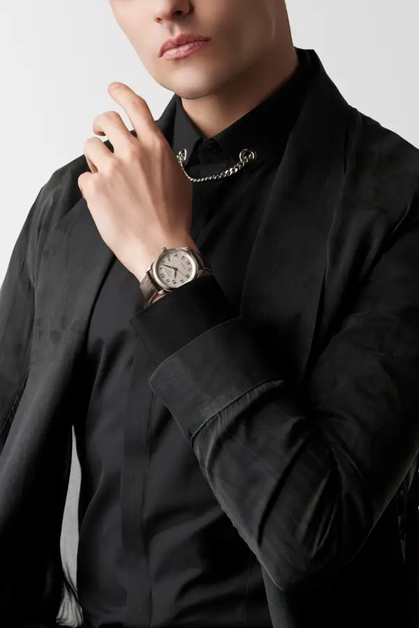 Trên mặt số bạc “barleycorn”, các chữ số Ả Rập và kim xanh nổi bật, mang đến vẻ tinh tế và khả năng hiển thị rõ ràng. Ô lịch ngày tại vị trí 3 giờ tăng tính tiện dụng mà vẫn giữ sự hài hòa cho thiết kế.