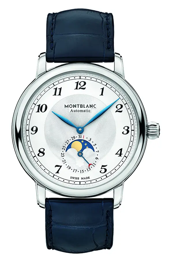 Dây đeo da cá sấu màu đen với khóa gập hoàn thiện phong cách sang trọng và mang lại cảm giác thoải mái khi đeo. Với khả năng chống nước 3 ATM (30 m), mẫu đồng hồ này phù hợp cho môi trường công sở và các dịp trang trọng. Montblanc Star Legacy Moonphase là sự hòa quyện hoàn hảo giữa nét cổ điển, tay nghề tinh xảo và vẻ đẹp thi vị của chu kỳ mặt trăng.