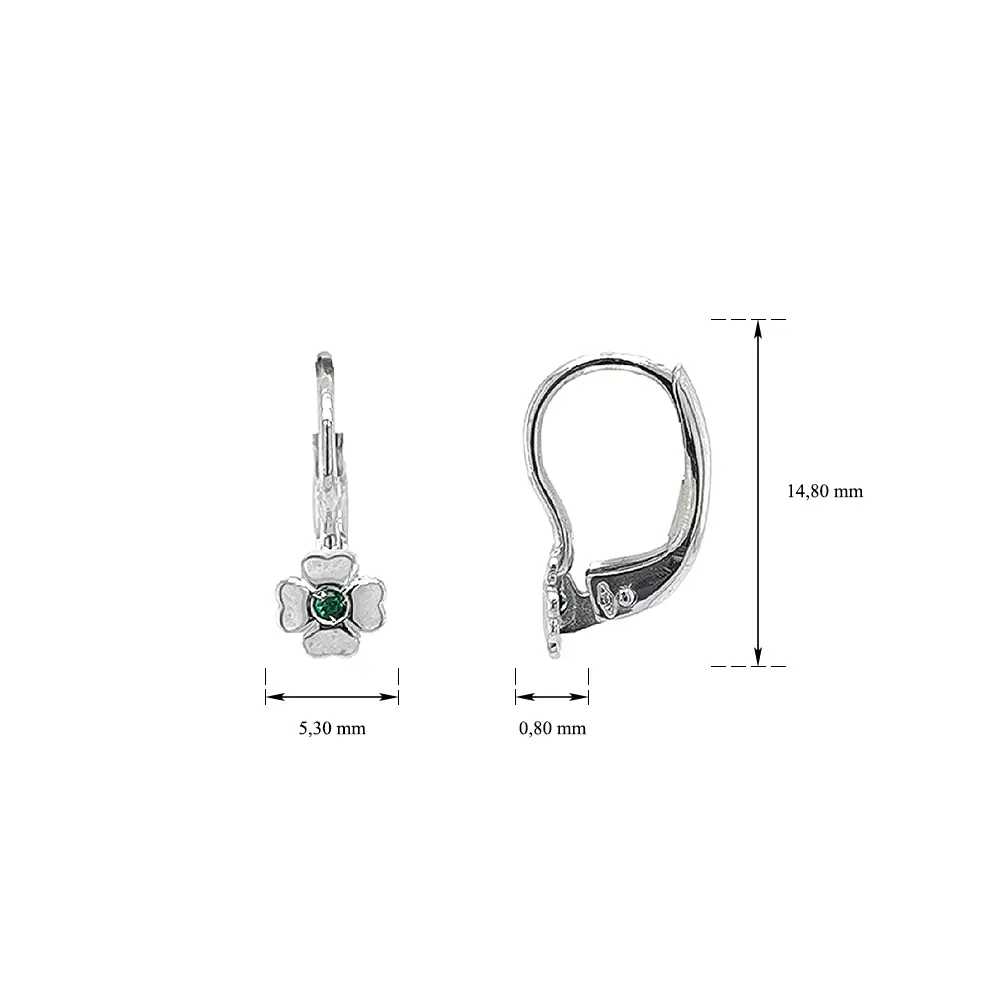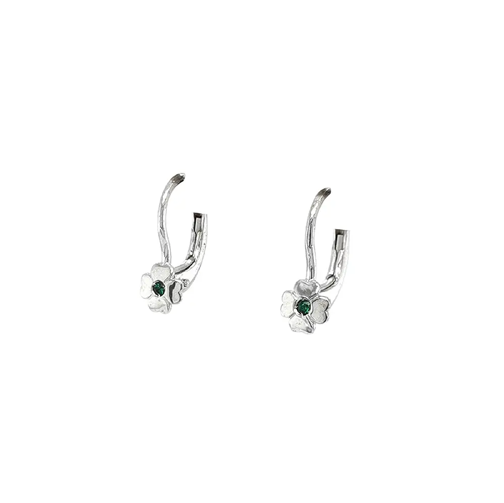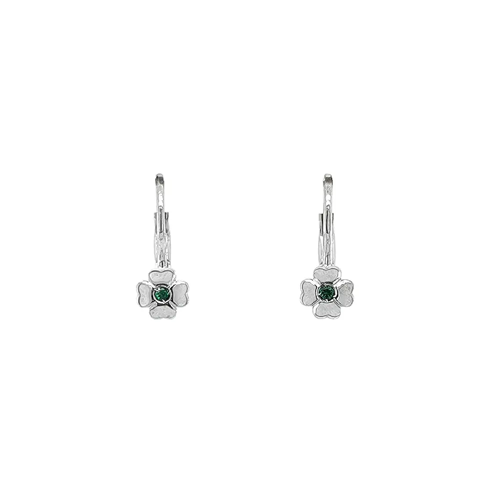 Bông tai hình lá bốn cánh với ngọc lục bảo và vàng trắng