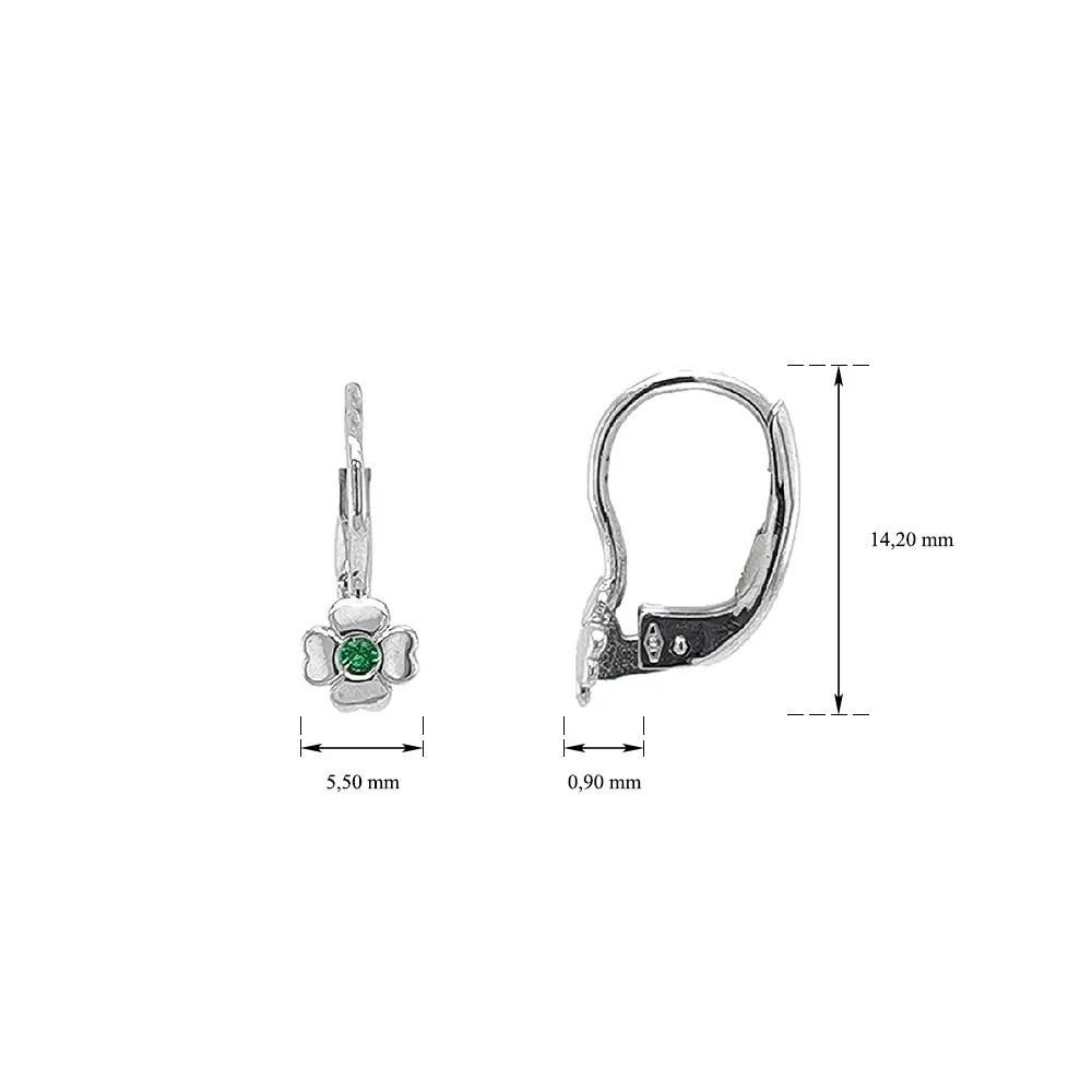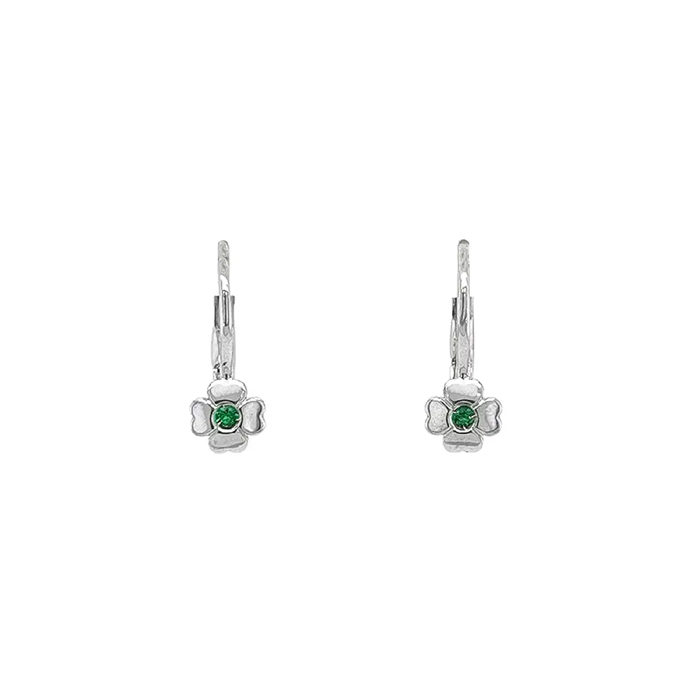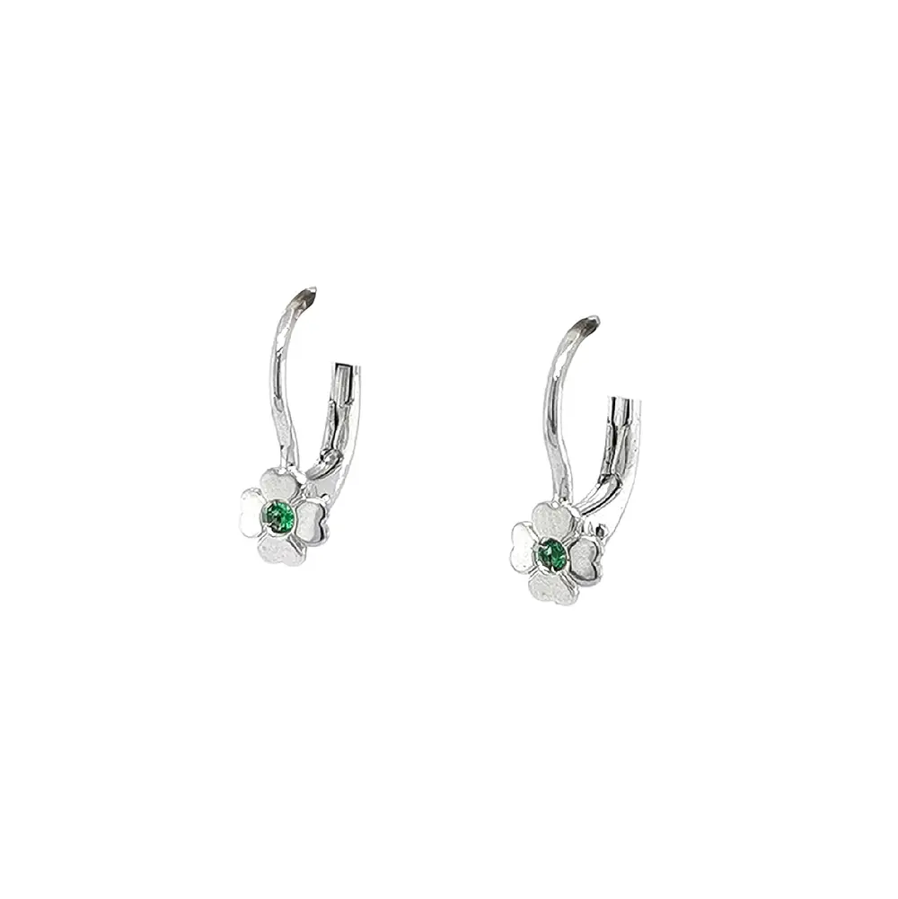 Bông tai hình lá bốn cánh với ngọc lục bảo và vàng trắng