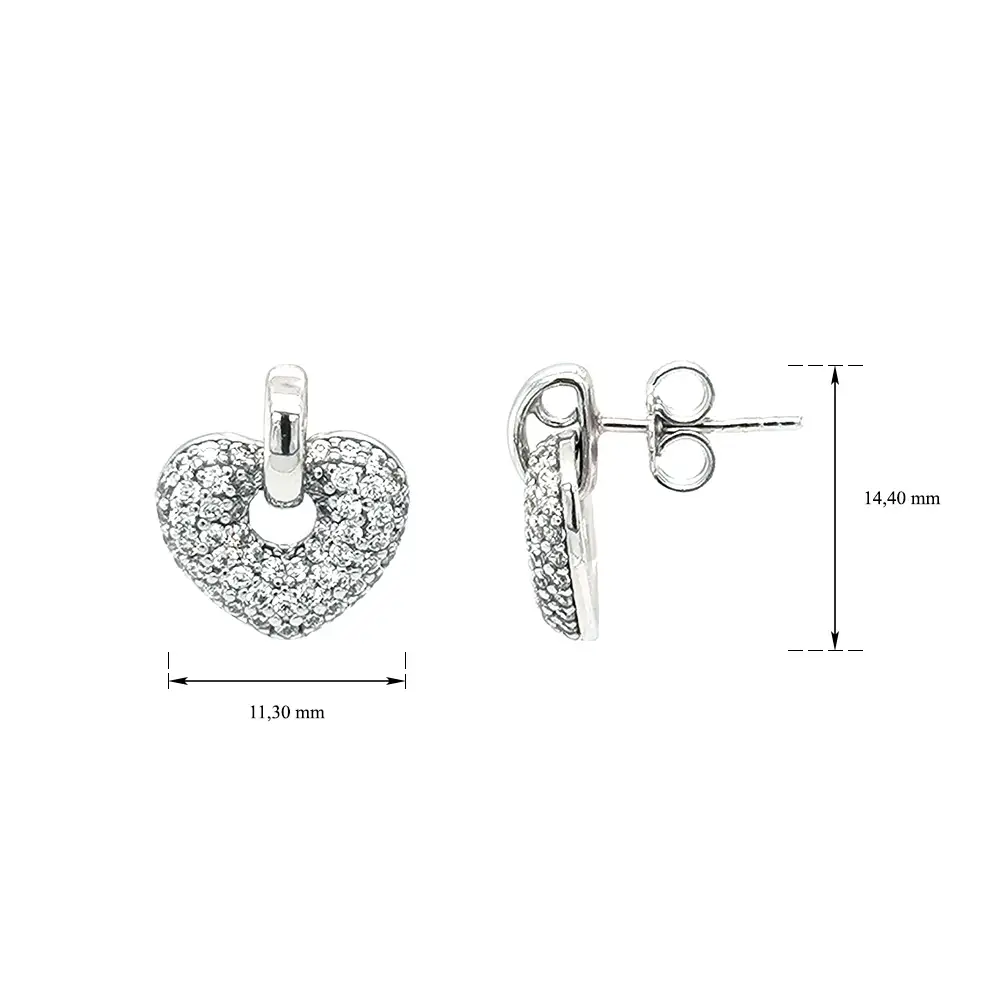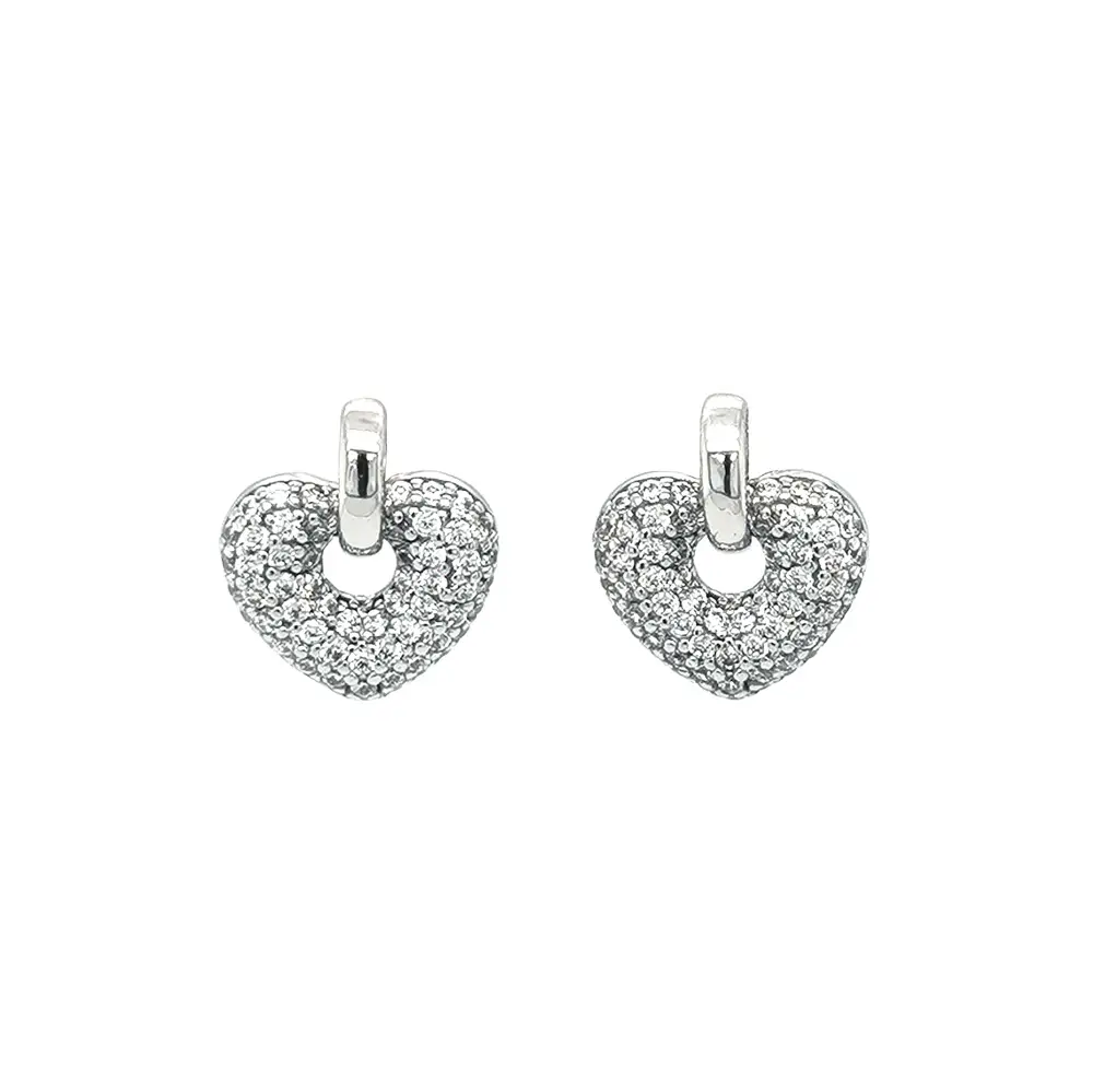 Bông tai hình trái tim đính đá zircon trong vàng trắng