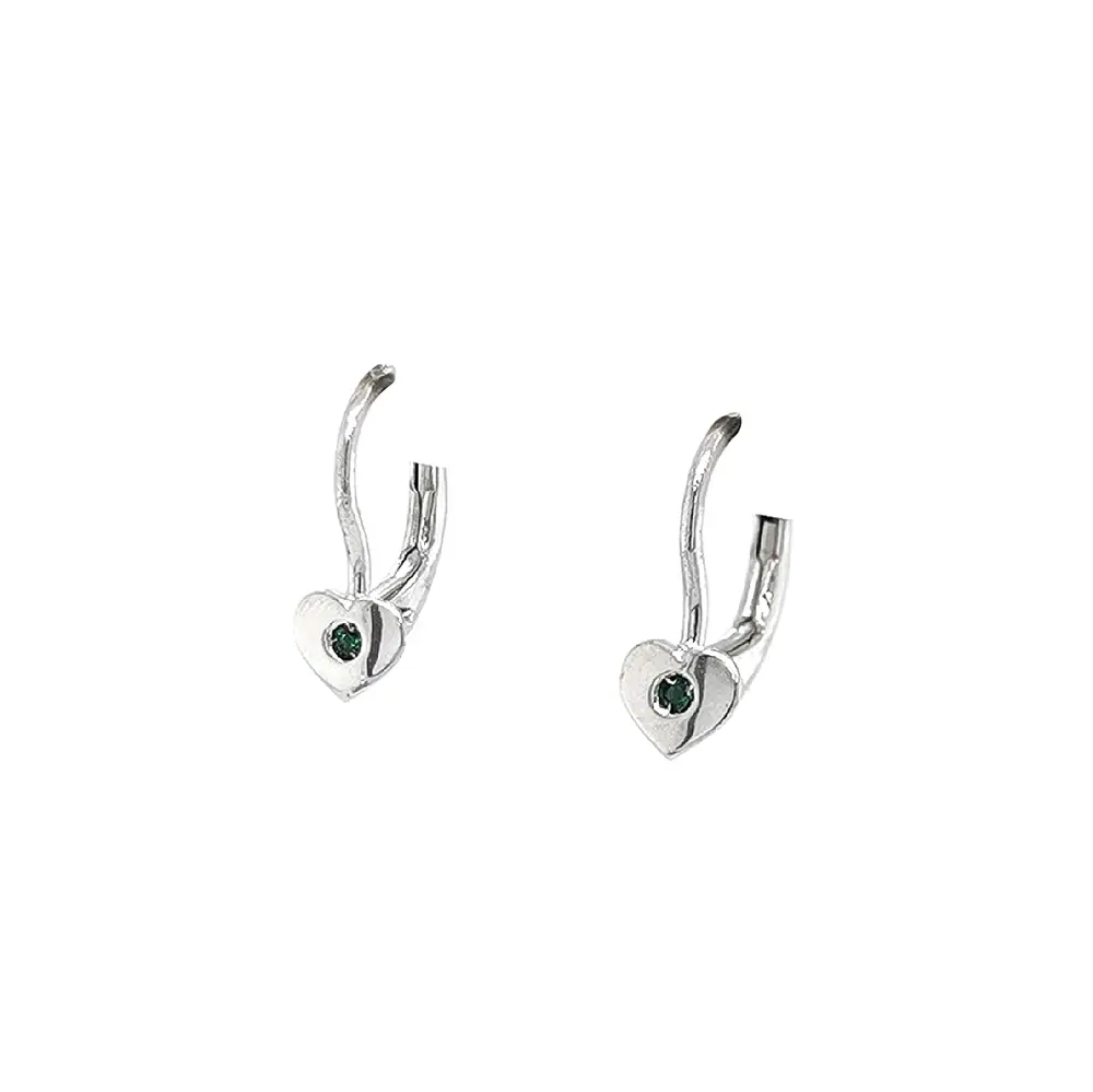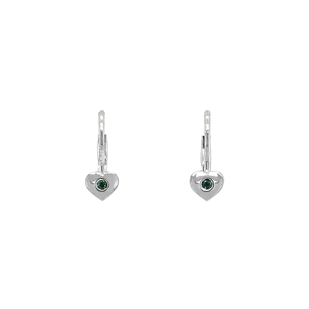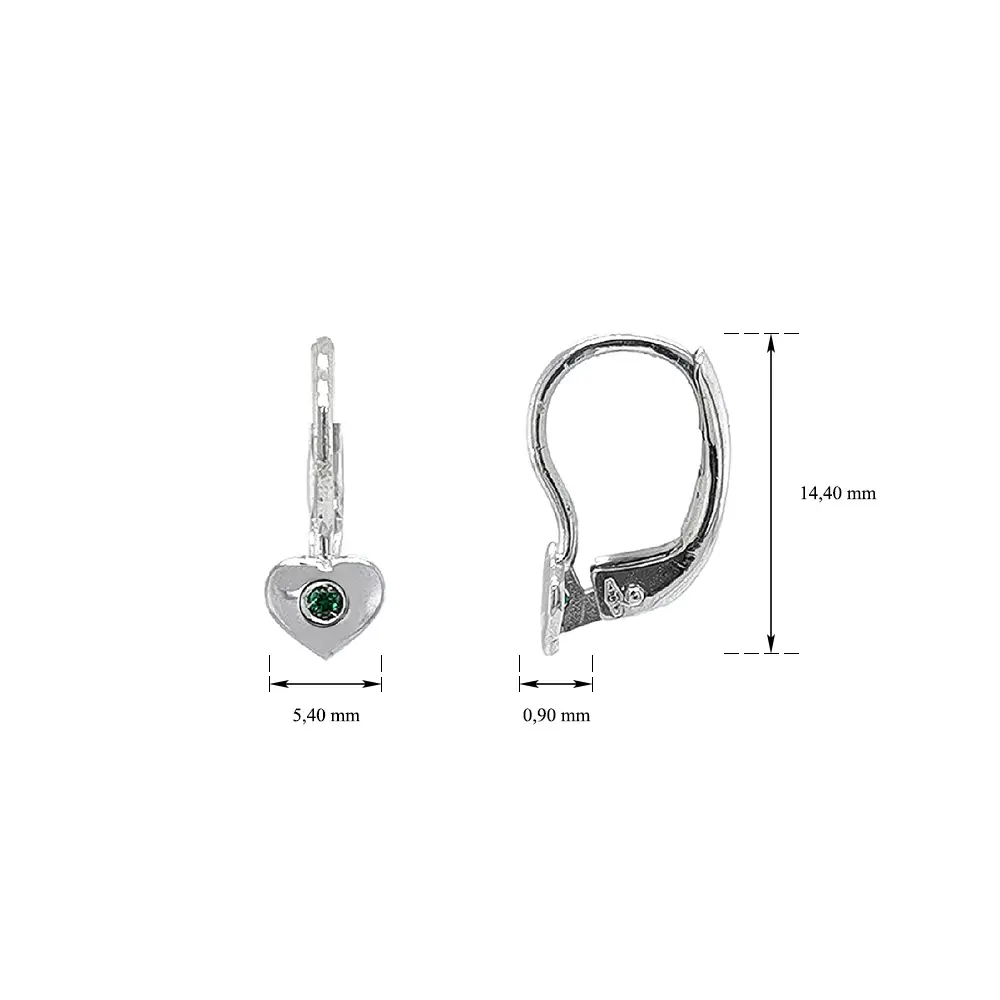 Bông tai hình trái tim đính ngọc lục bảo trên vàng trắng