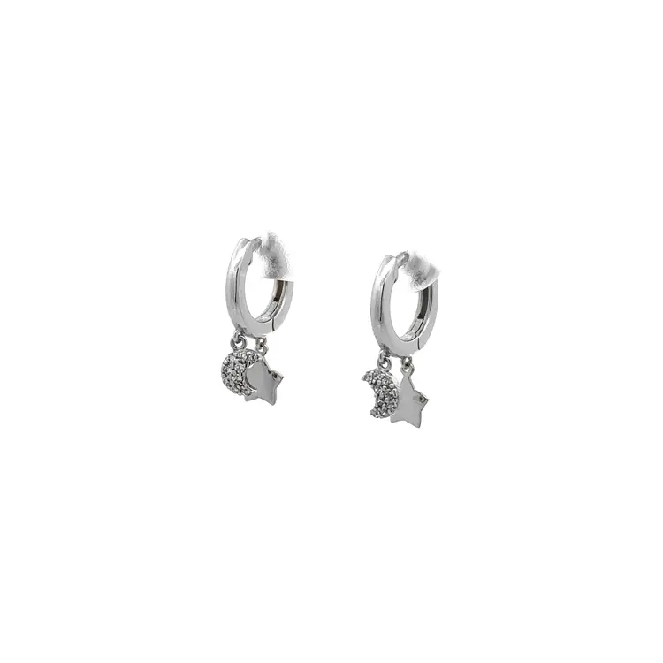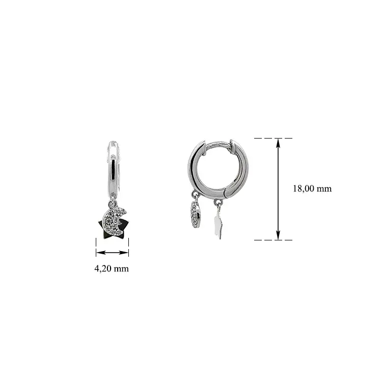 Bông tai hình trăng lưỡi liềm và ngôi sao bằng vàng trắng