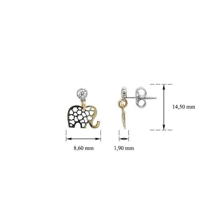 Bông tai hình voi đính đá zircon trong vàng