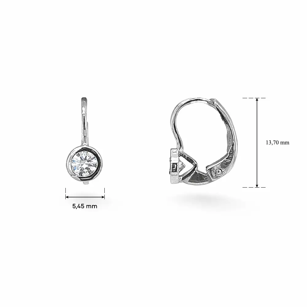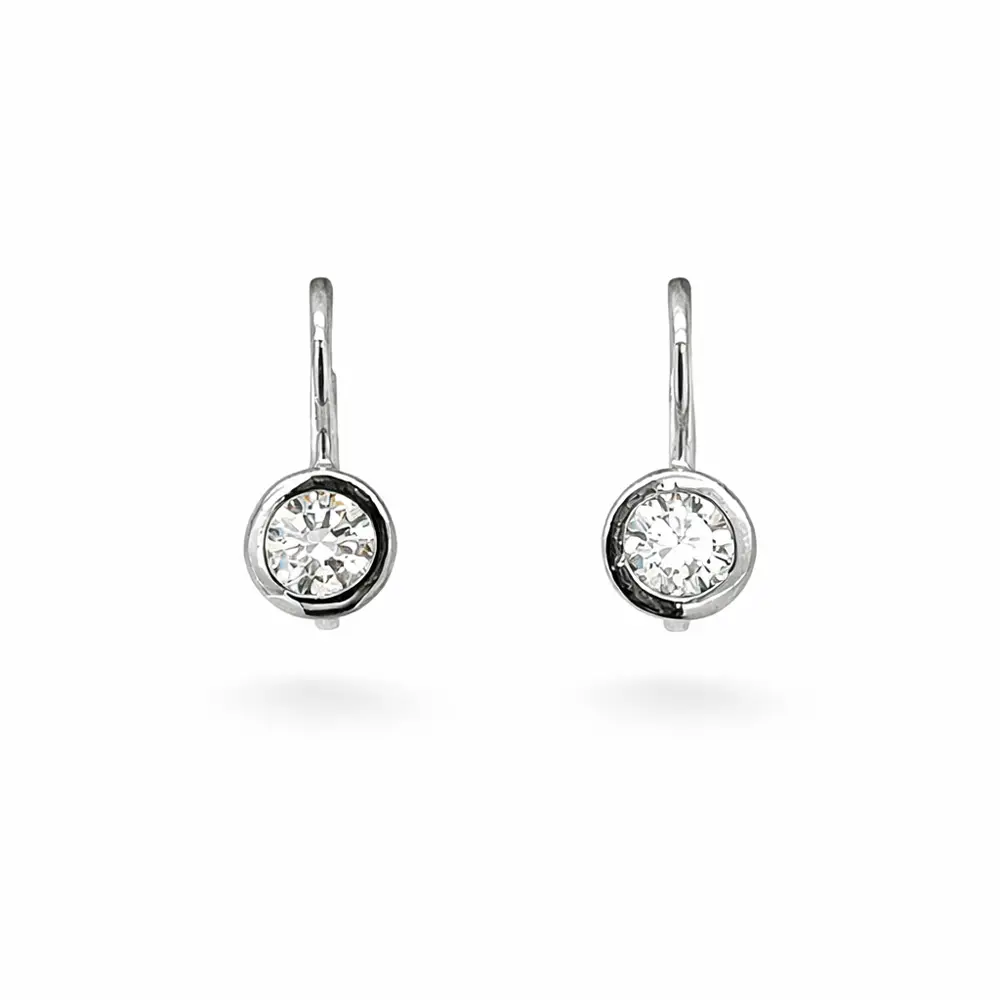 Đôi bông tai treo tinh tế bằng vàng trắng này được điểm xuyết bởi viên zirconia trung tâm trong khung tròn, mang lại ánh sáng trong trẻo và vẻ đẹp vượt thời gian. Thiết kế tối giản làm nổi bật độ lấp lánh của viên đá và giữ được nét thanh lịch, phù hợp cho cả đeo hằng ngày lẫn những dịp trang trọng.