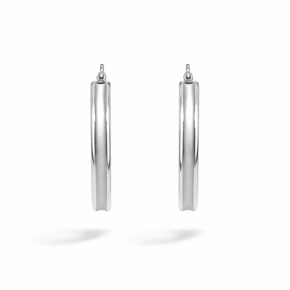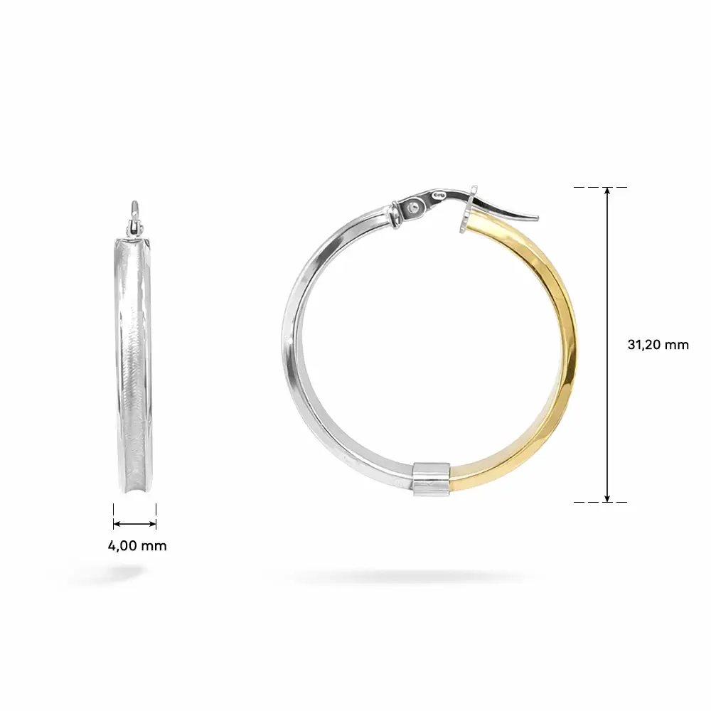 Với bề rộng 4,00 mm và đường kính 31,20 mm, đôi bông tai mang dáng vẻ nổi bật nhưng hài hòa. Khóa cài chắc chắn giúp đeo thoải mái.