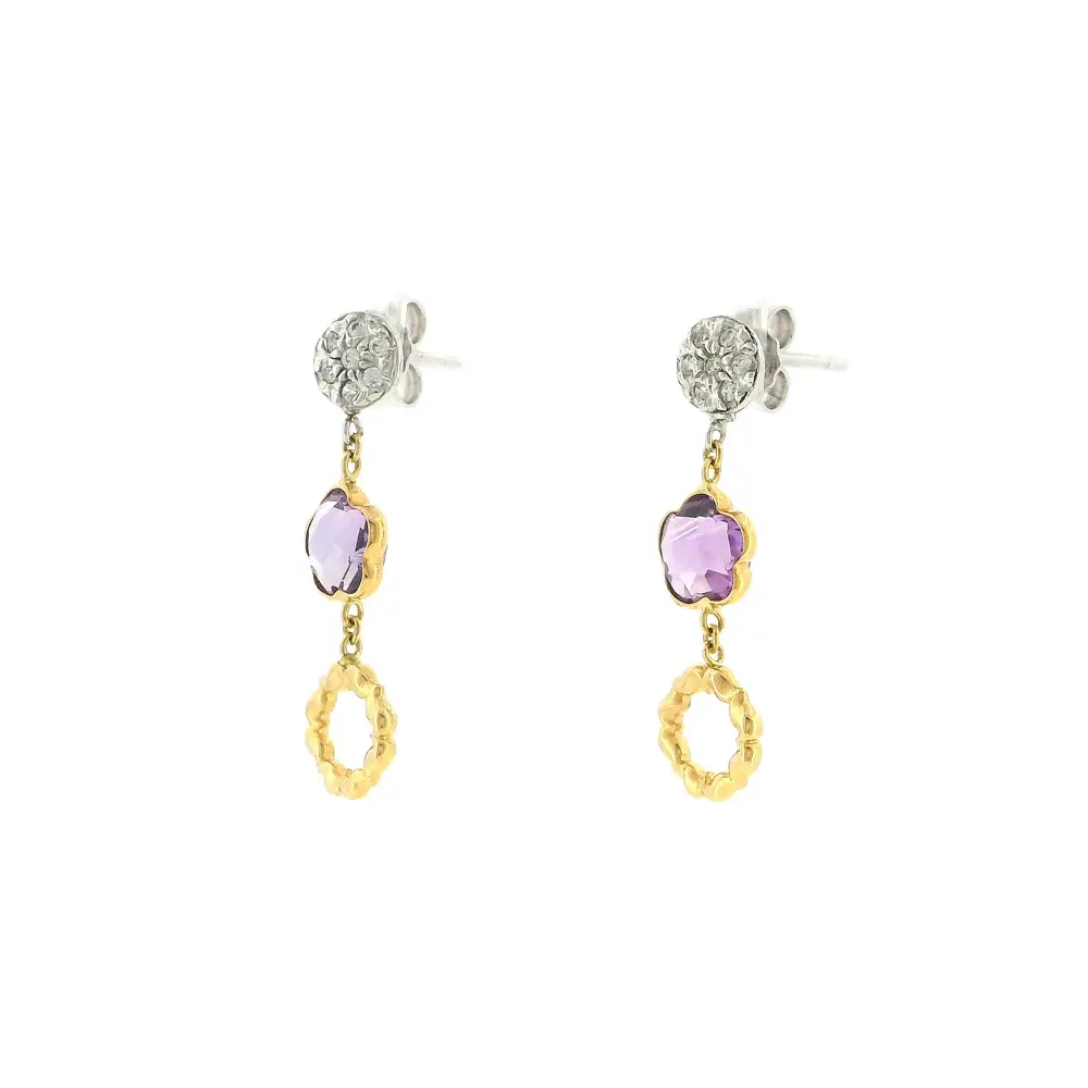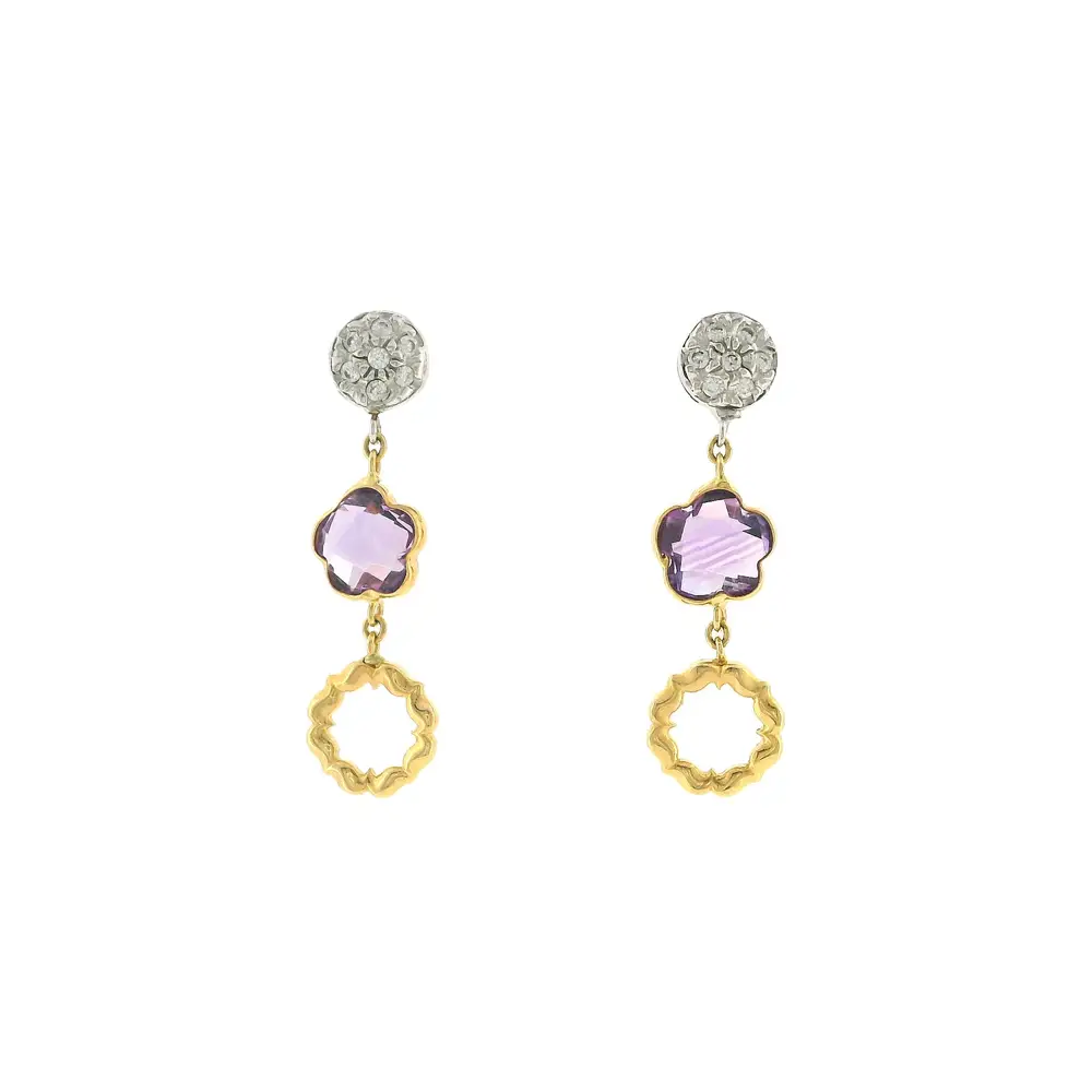 Bông tai vàng cao cấp với thạch anh tím và đá zircon tinh xảo