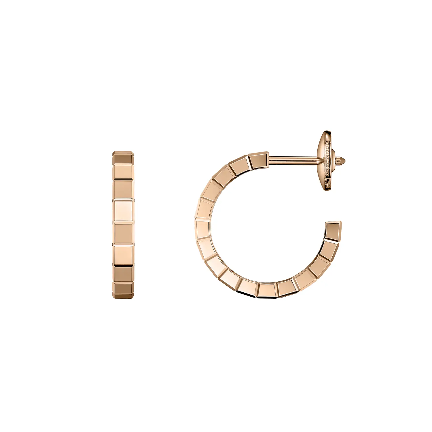 Được chế tác từ vàng hồng 18K, đôi bông tai toát lên vẻ ấm áp và nữ tính, thể hiện tay nghề thủ công hoàn hảo của Chopard. Bộ sưu tập Ice Cube tượng trưng cho sự giản dị, tinh tế và vẻ đẹp vượt thời gian, phù hợp cho cả ngày thường lẫn những dịp đặc biệt.