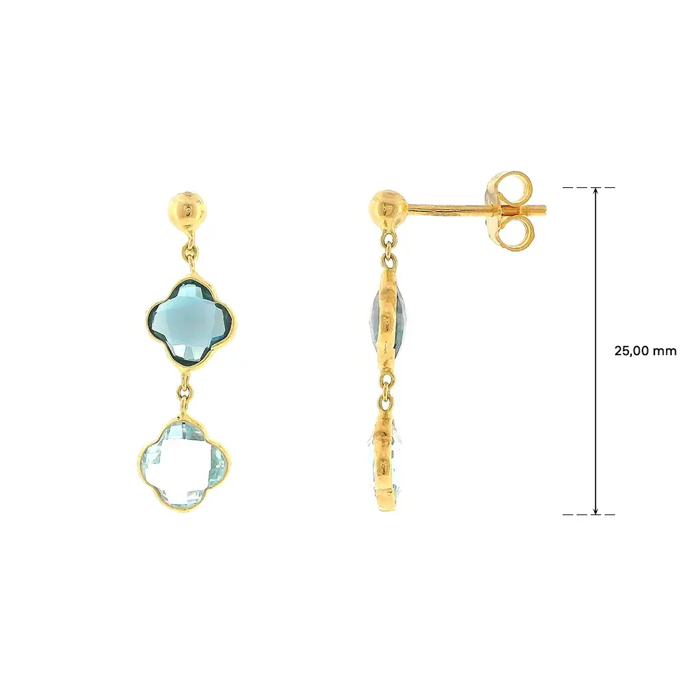 Khám phá vẻ đẹp thanh lịch vượt thời gian của bông tai vàng dáng dài với đá màu xanh, nổi bật với gam màu tinh tế và thiết kế sang trọng. Những viên đá xanh mang lại vẻ tươi mới và đẳng cấp, phù hợp với mọi phong cách.