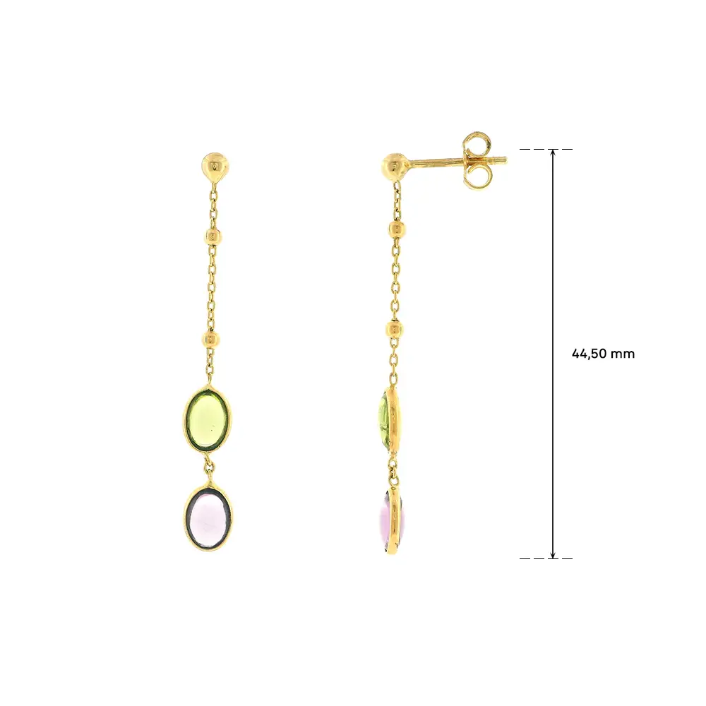 Bông tai vàng dáng dài với đá nhiều màu