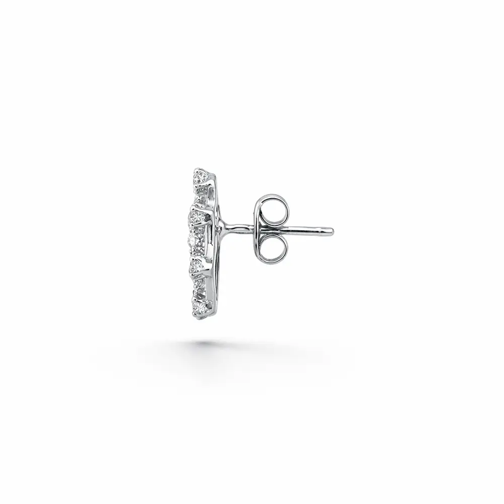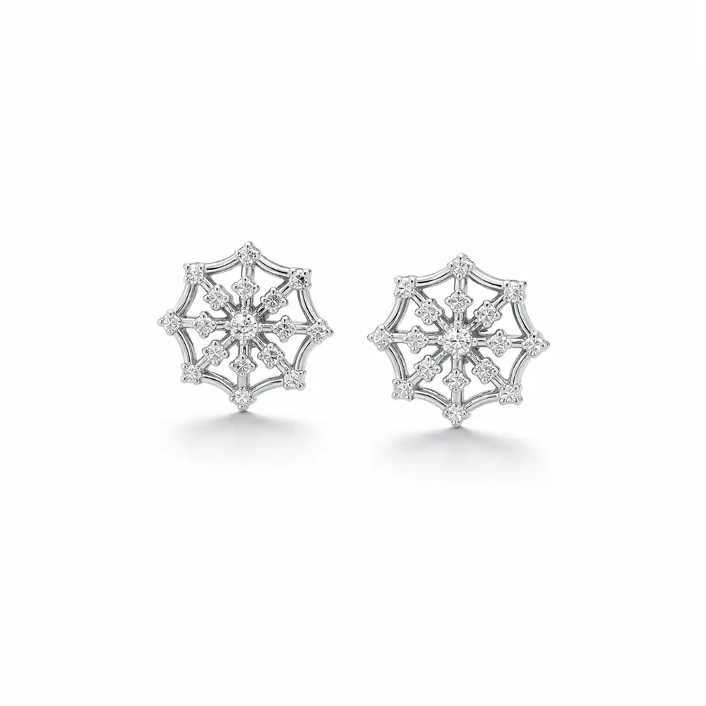 Đôi bông tai vàng dạng đinh với họa tiết bông tuyết gây ấn tượng bởi thiết kế tinh xảo và nhẹ nhàng, mang vẻ đẹp thanh lịch nhưng vẫn sinh động. Các viên zircon được đính tỉ mỉ tạo nên hiệu ứng lấp lánh như tinh thể băng, phản chiếu ánh sáng một cách cuốn hút.