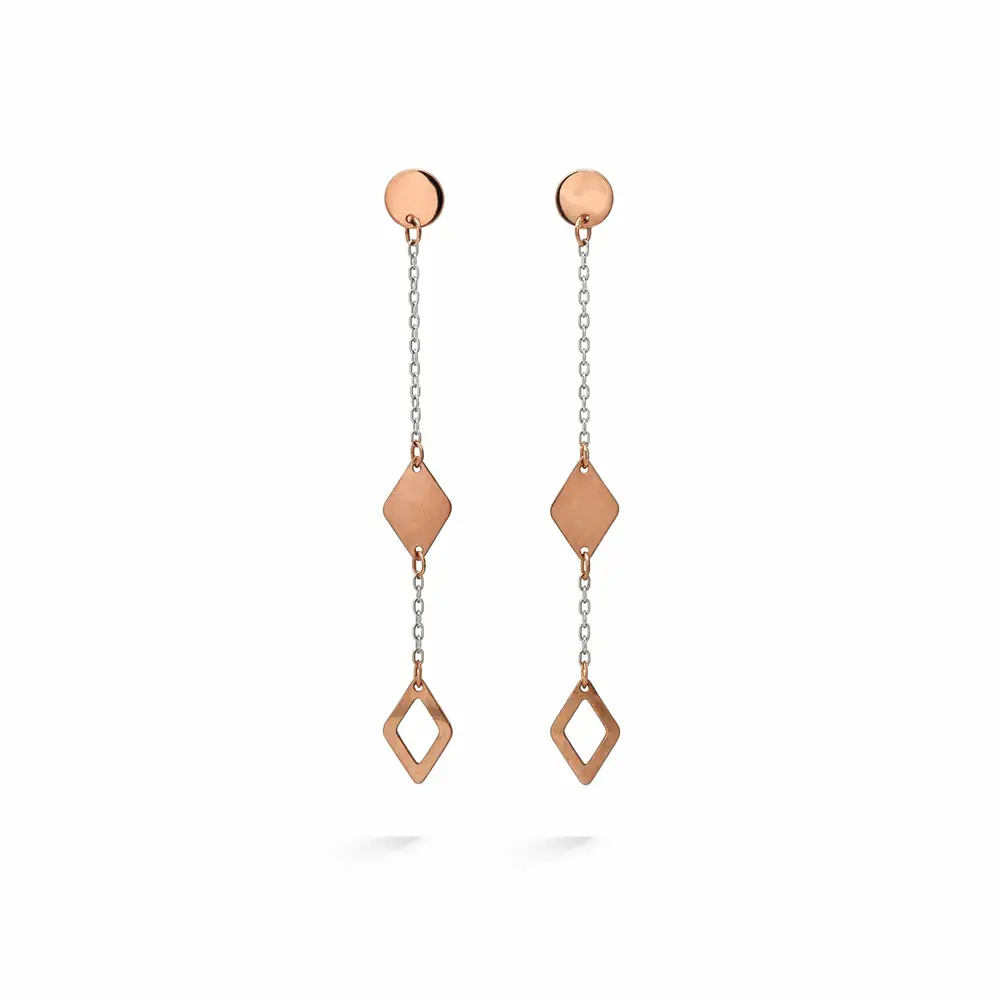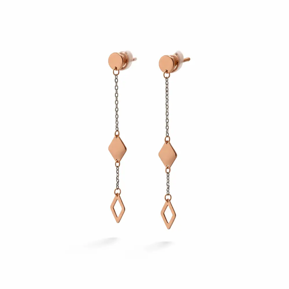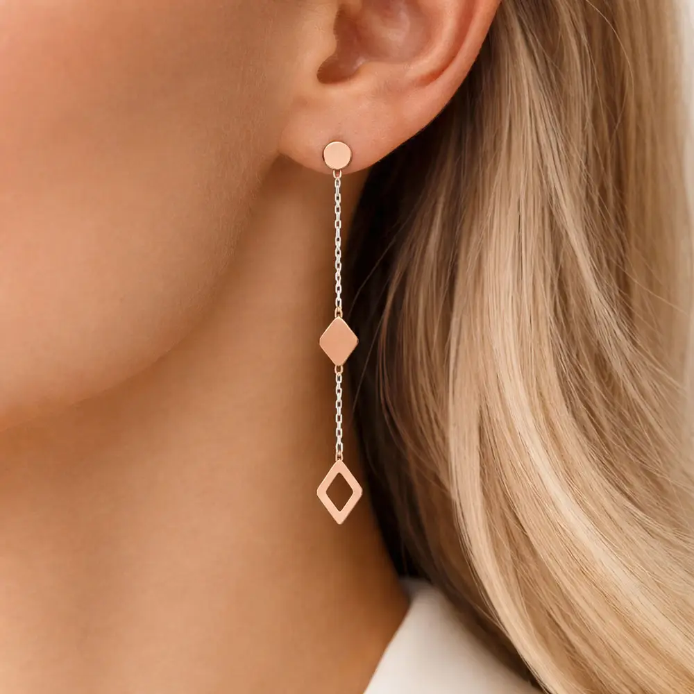 Bông tai vàng dạng xích với họa tiết hình học gây ấn tượng với thiết kế hiện đại, tinh giản, kết hợp giữa sợi dây xích mảnh và các chi tiết hình học được tạo hình chính xác. Đường nét tối giản mang lại vẻ thanh lịch cùng chuyển động nhẹ nhàng, tôn lên phong cách đương đại.
