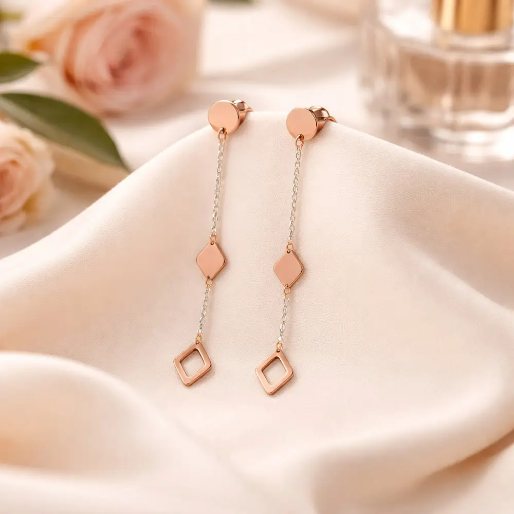 Với chiều dài 55,60 mm, đôi bông tai trở nên nổi bật hơn nhưng vẫn giữ được cảm giác nhẹ và tinh tế. Đây là lựa chọn lý tưởng cho những ai yêu thích vẻ đẹp hiện đại mang cảm hứng kiến trúc, phù hợp cho cả trang phục hằng ngày lẫn buổi tối.