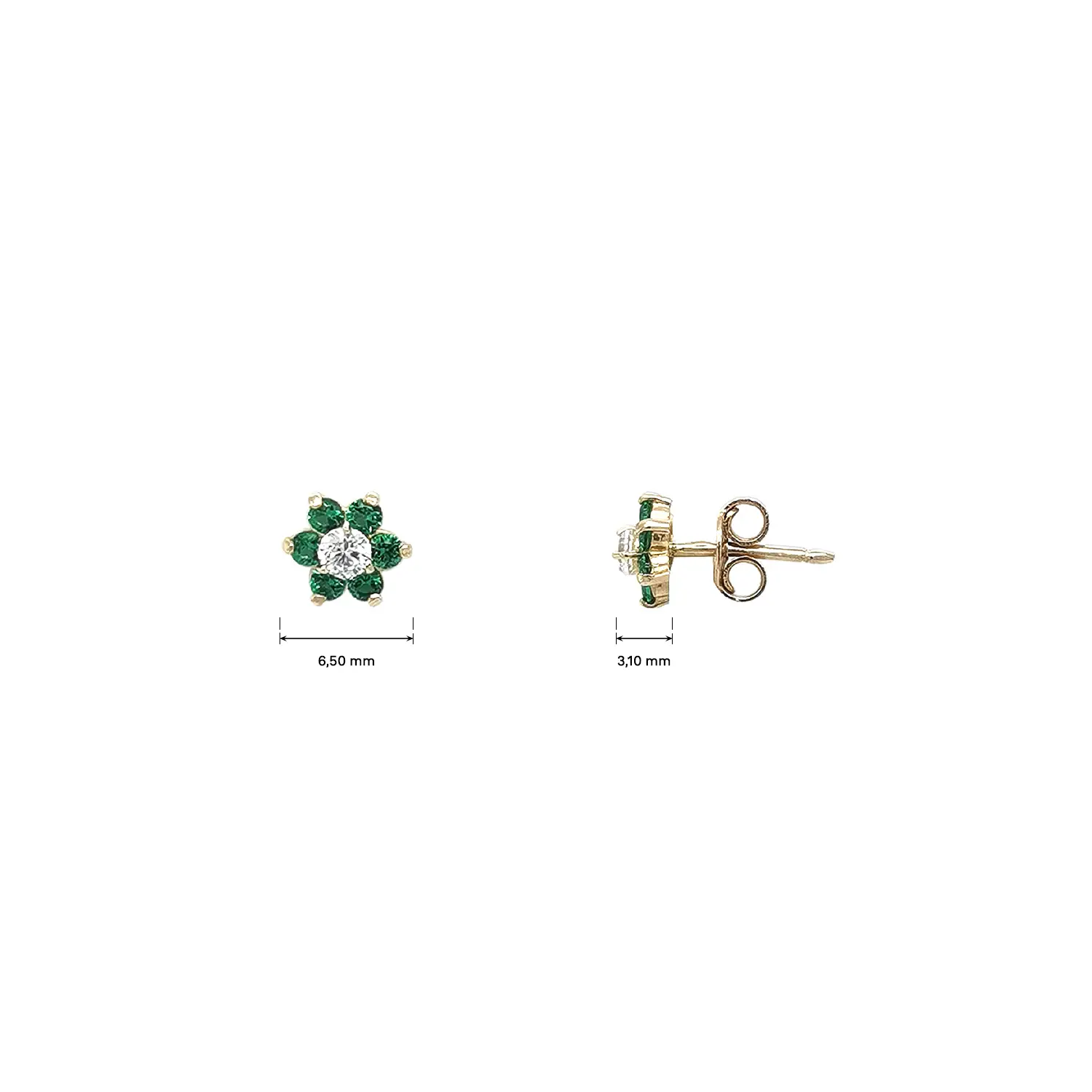 Bông tai vàng hình bông hoa đính đá xanh lá và đá trắng