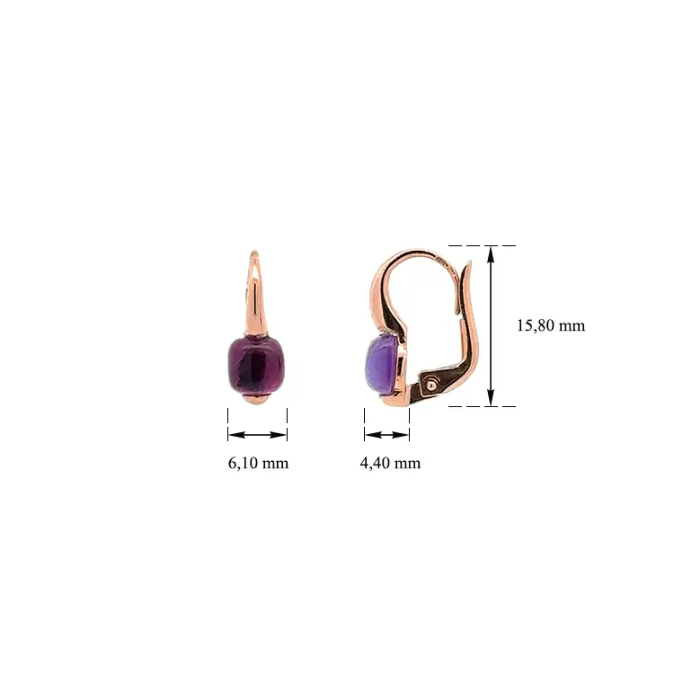 Bông tai vàng hồng đính thạch anh tím thanh lịch