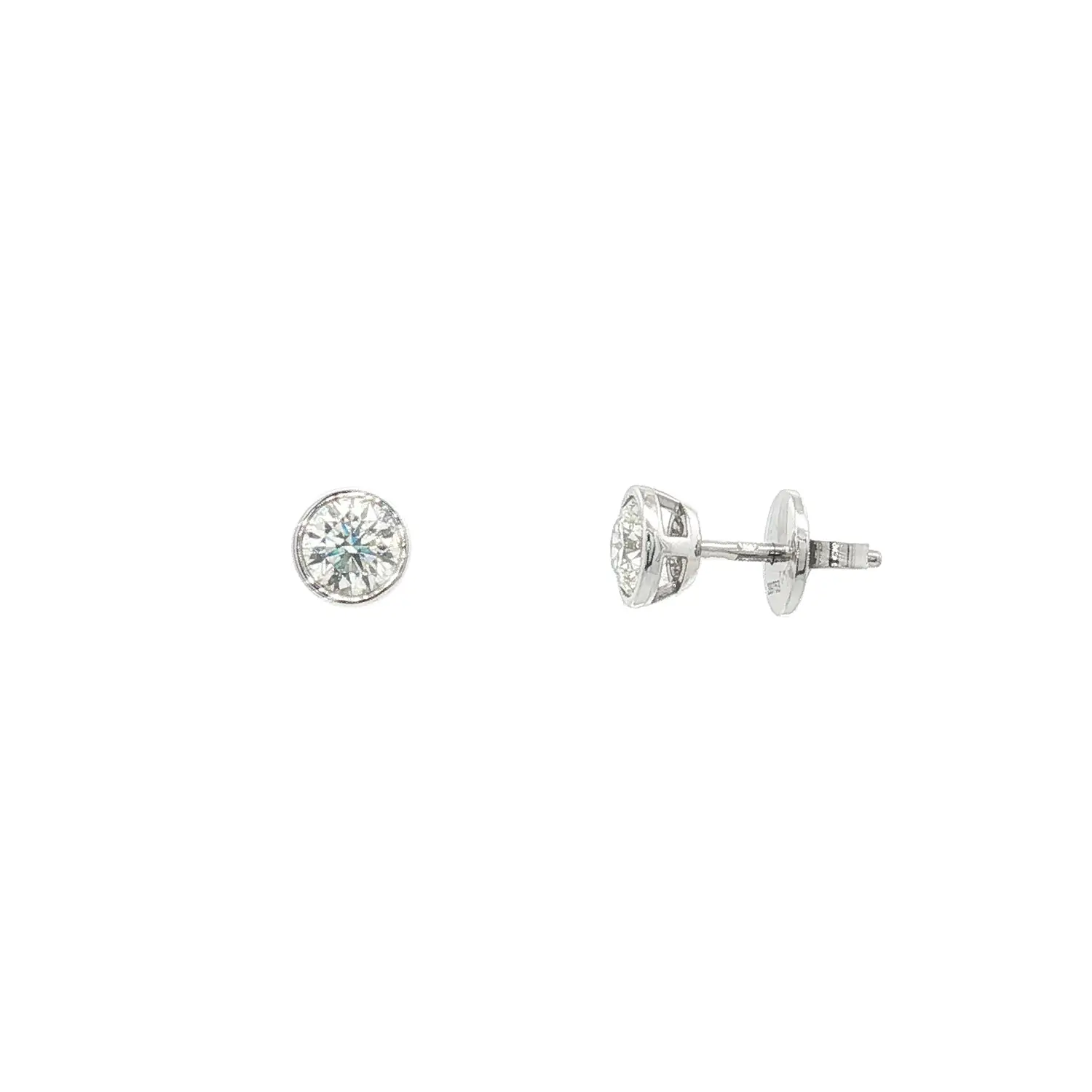 Bông tai vàng trắng đính kim cương 1,00 ct kiểu viền trơn