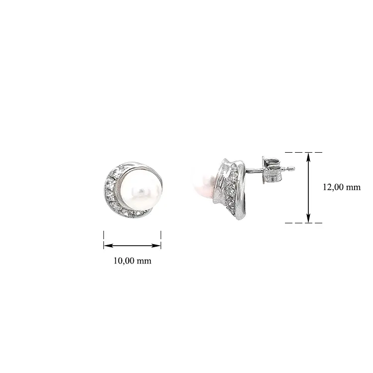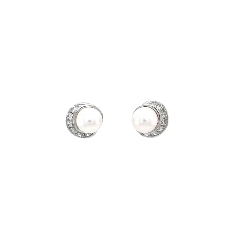 Bông tai vàng trắng đính ngọc trai và đá zirconia thanh lịch