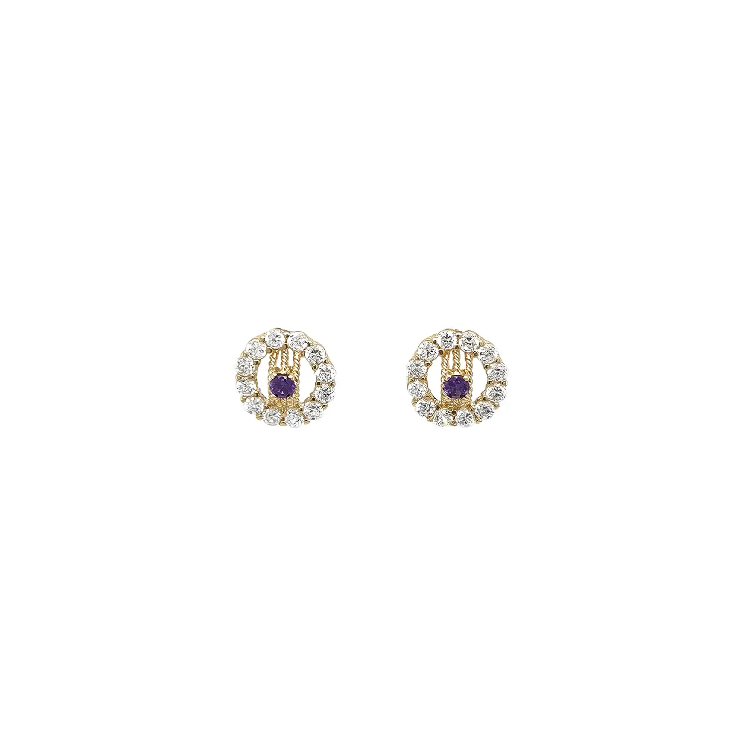 Bông tai vàng với thạch anh tím và viền đá zircon trong suốt